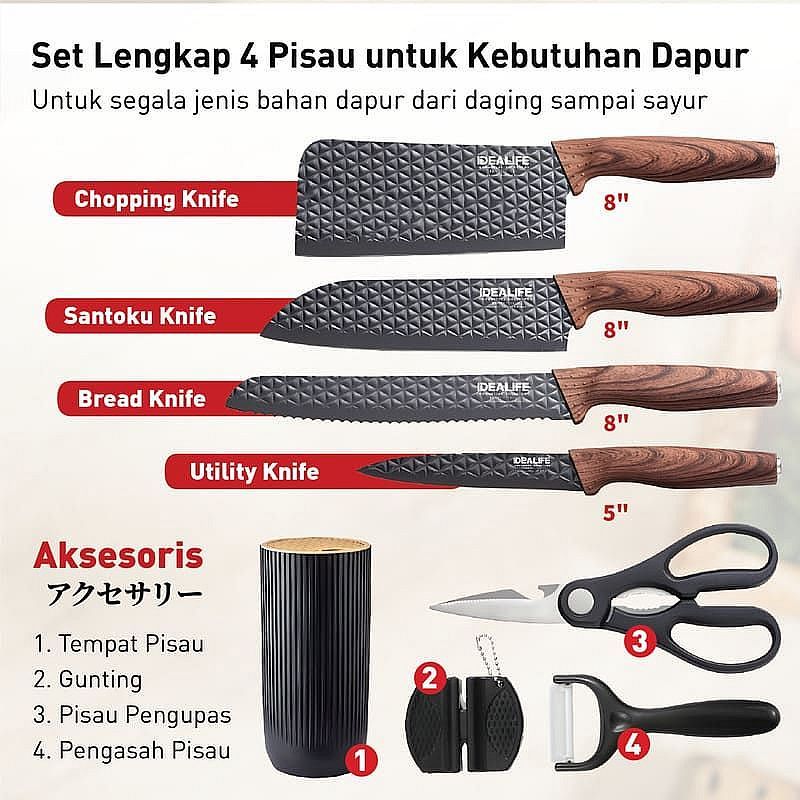 IDEALIFE - Professional Knife Set - Perlengkapan Pisau Dapur - KS-7001