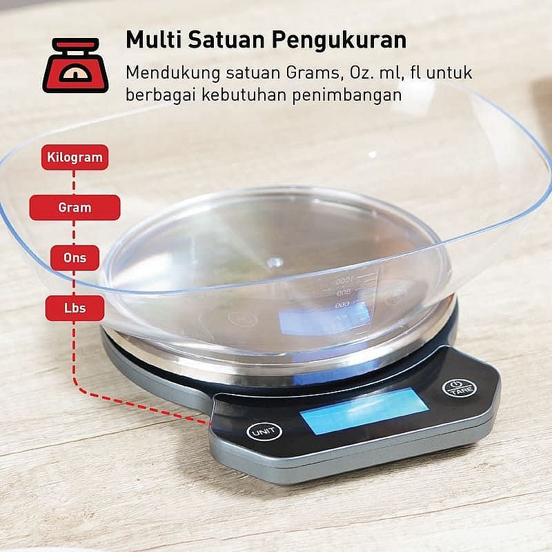 IDEALIFE - Digital Kitchen Scale – Timer + Bowl, 5KG/1GR - Timbangan Kue Digital - KT-5004