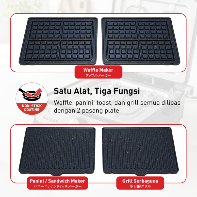 IDEALIFE - 3in1 Panini & Waffle Maker - 3in1 Pemanggang Panini & Waffle - EG-3002