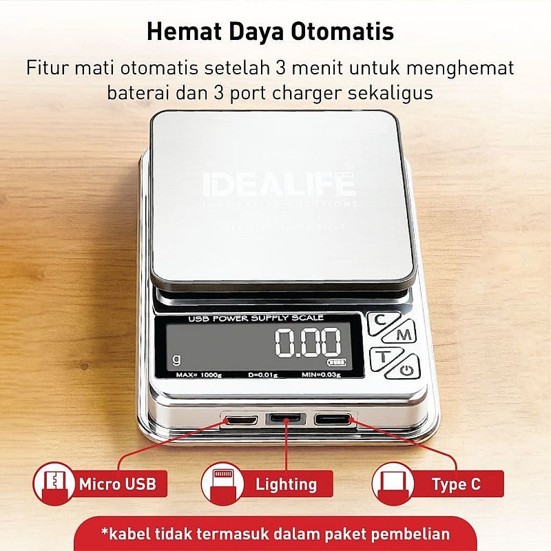 IDEALIFE - Rechargeable Pocket Scale - Timbangan Saku Isi Ulang(PS-2002)