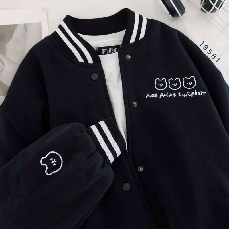Jacket Wanita NET FRINT BASEBALL Oversize | Jaket Varsity Bordier | Jaket Bomber Wanita