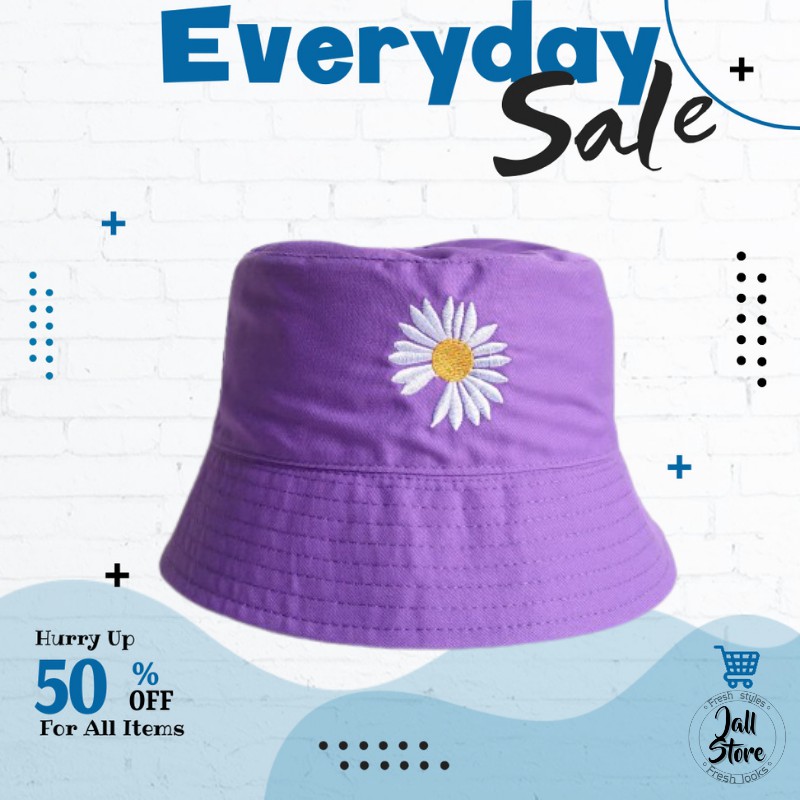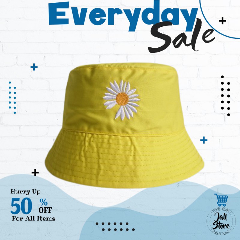Topi Bucket Bolak Balik Anak Perempuan Kids Motif Karakter Bunga Matahari Hat Buket Pet Lucu Terbaru