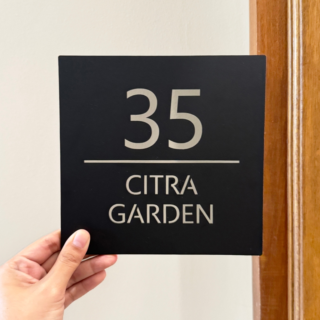 Nomor Rumah Akrilik Custom Papan Alamat Modern Tahan Cuaca Anti Karat ukuran 11x30 - IMPRESI