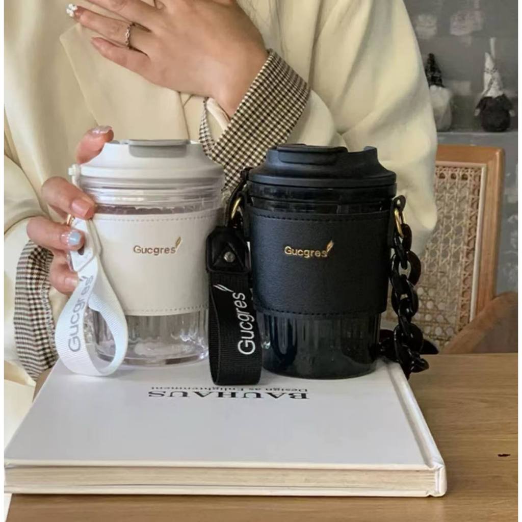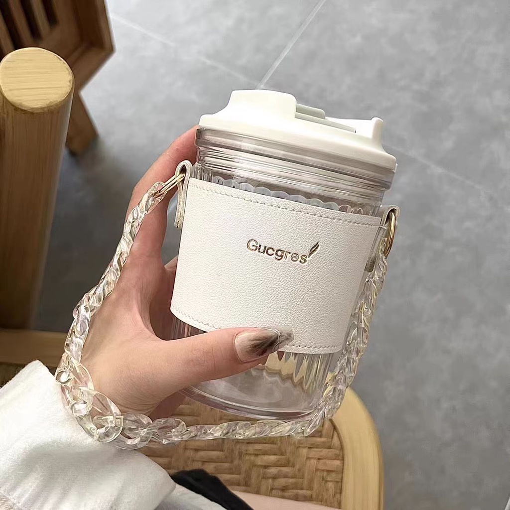 Gelas tumbler air minum plastik Botol BPA FREE + sedotan Cangkir cup coffee dengan tutup anti tumpah