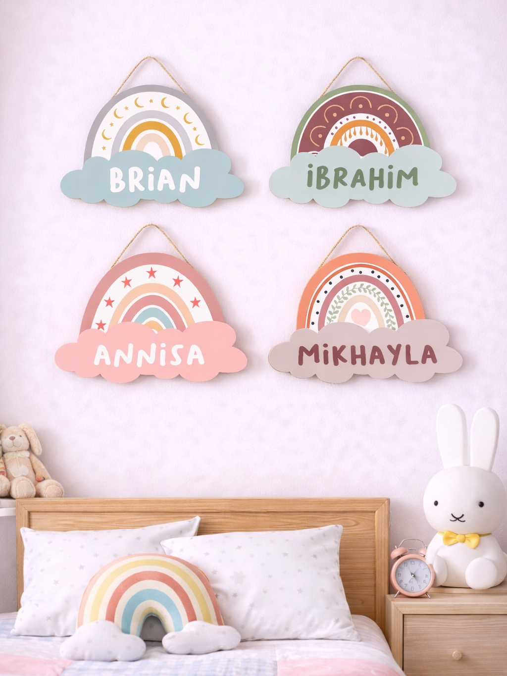 PSO Hiasan Dinding Pajangan Wall Decor Custom Nama Boho Rainbow Lucu Size 20x30 cm Dekorasi Kamar