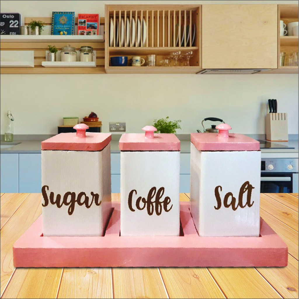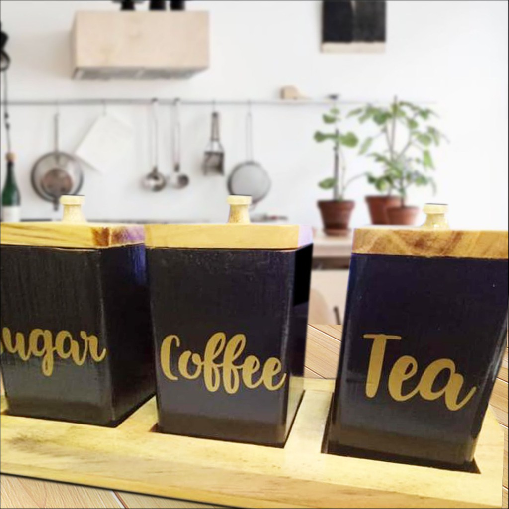 PSO Hiasan Rumah Penyimpanan Tempat Kopi Set Gula Garam Teh Kayu Natural Dekorasi Meja Dapur