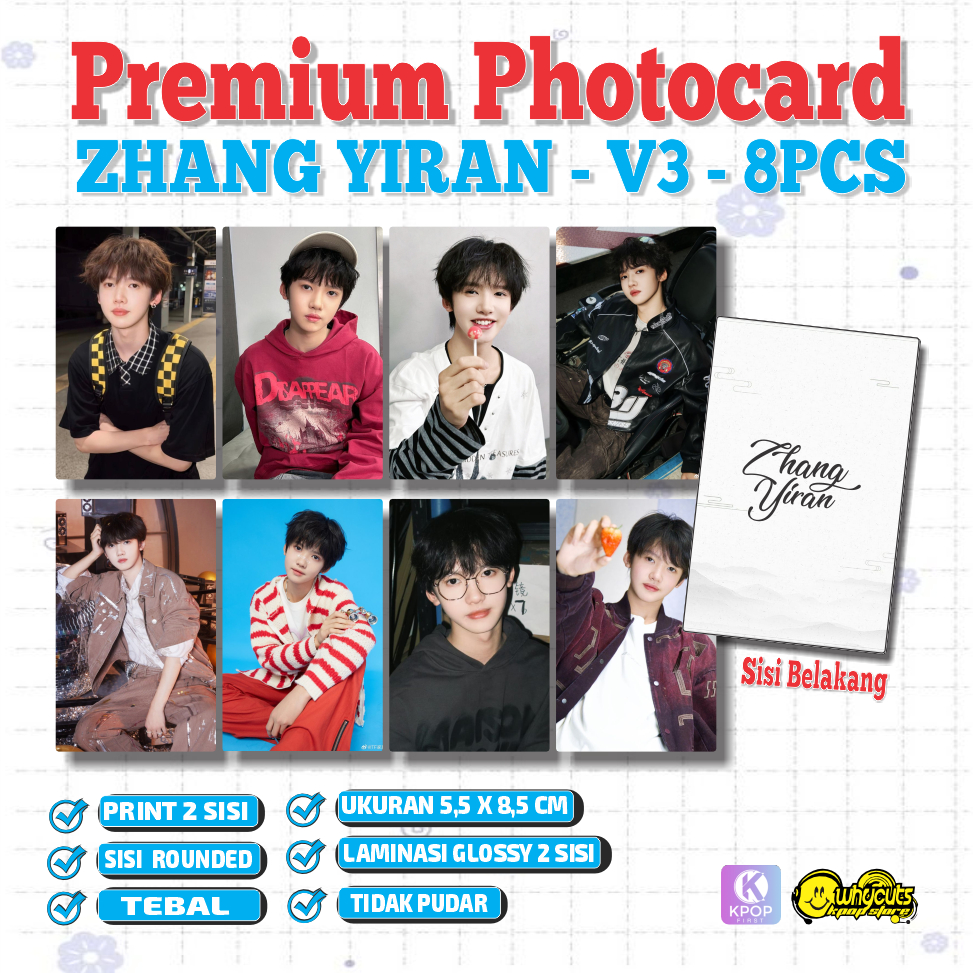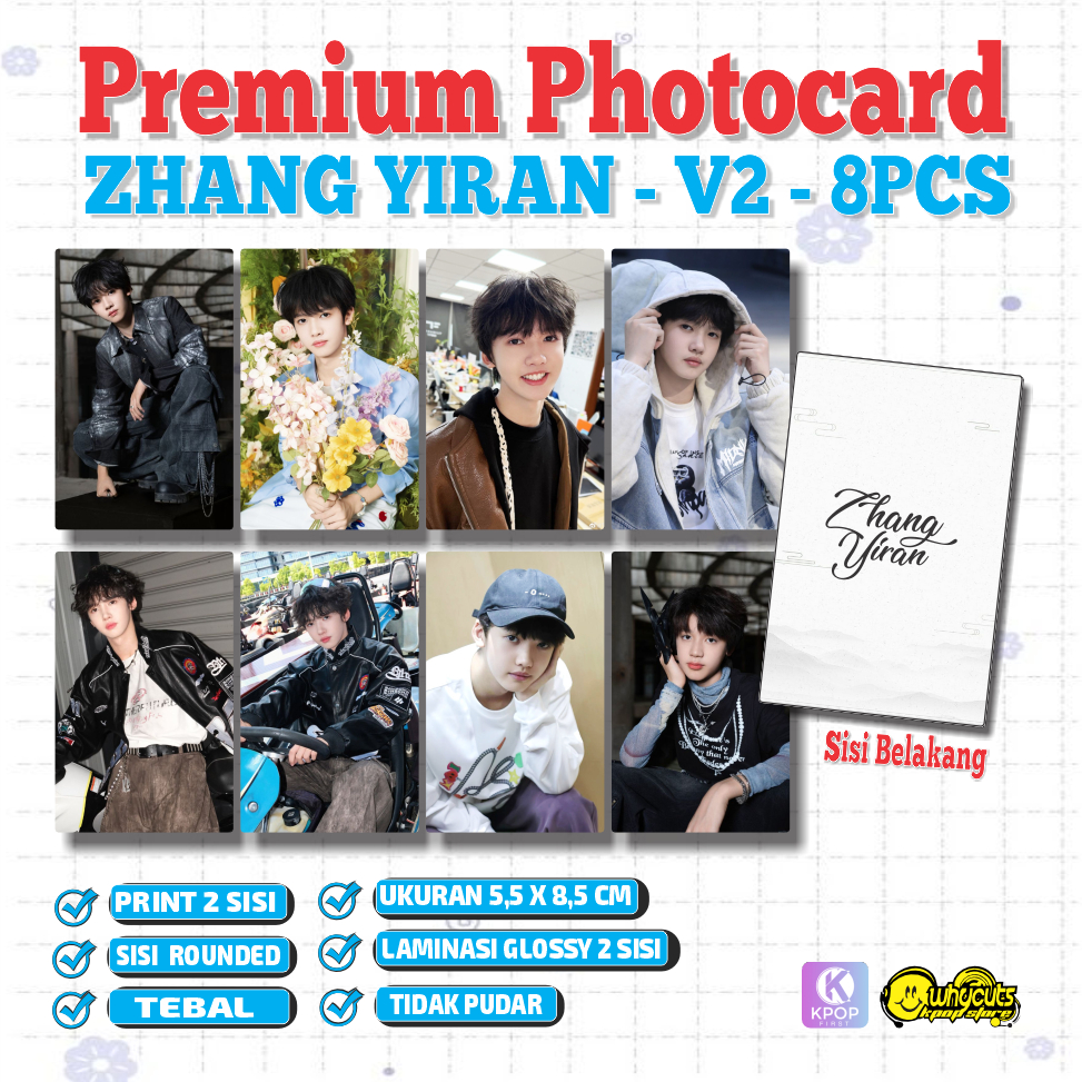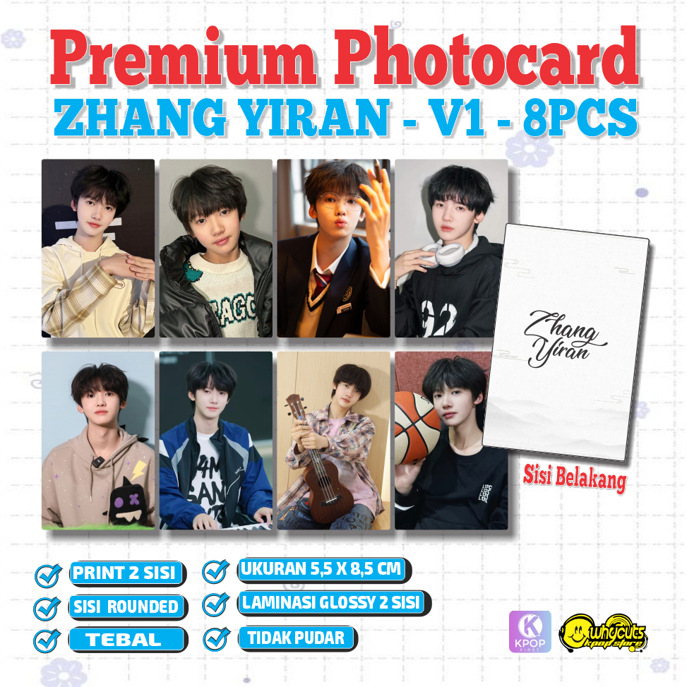 Zhang Yiran Photocard Set Aktor China isi 8Pcs Print 2 sisi laminasi glossy tebal tidak pudar