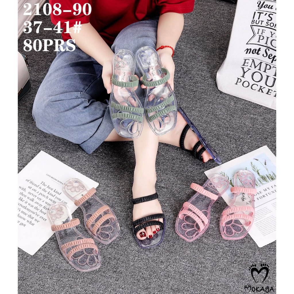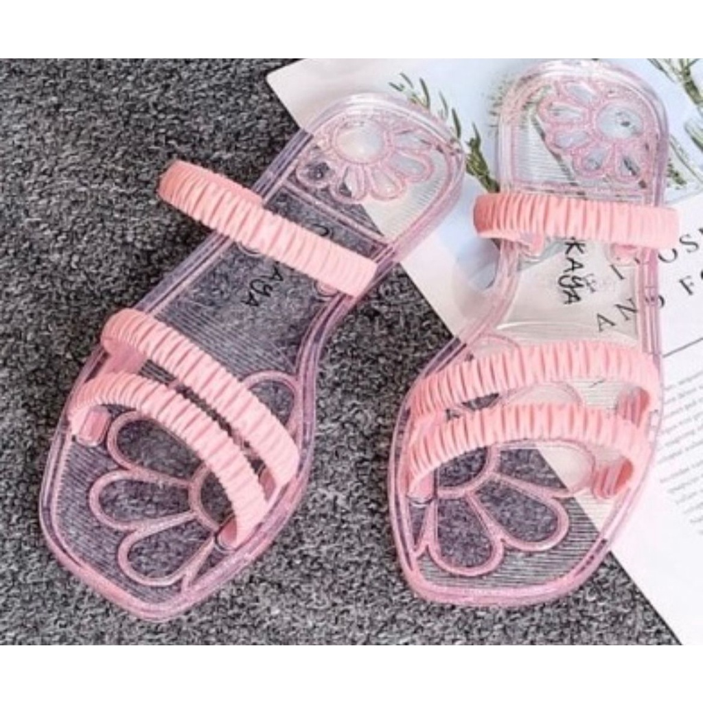 Sandal Slop Wanita Jelly Transparant 3 Tali Kerut Super Cantik Simple Import Mokaya /Size 37-41 (2108-90)