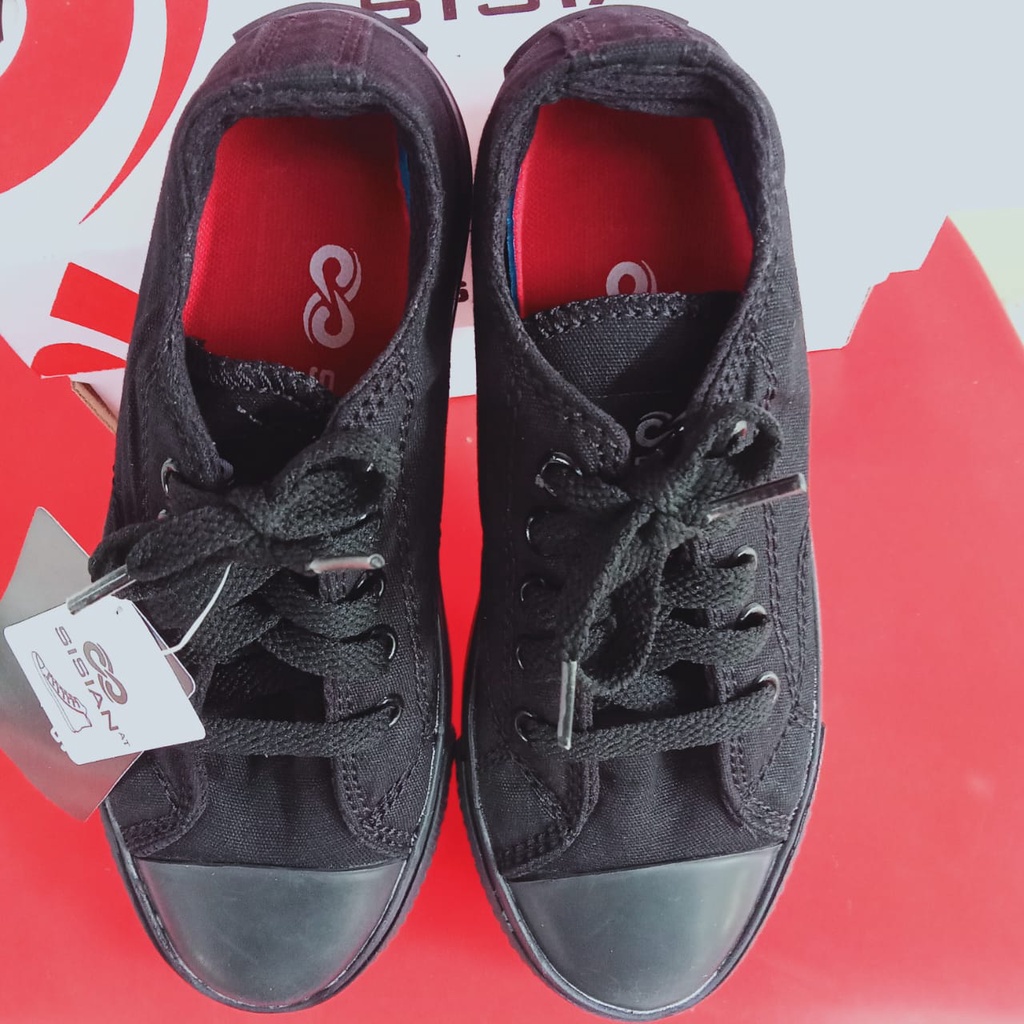SEPATU SNEAKER ANAK PEREMPUAN USIA 5,6,7,8,9,10,11 TAHUN SEPATU SNEAKER PAKAI TALI SIMPUL SEPATU SEKOLAH ANAK SD KUALITAS BAGUS DAN MURAH WARNA HITAM POLOS