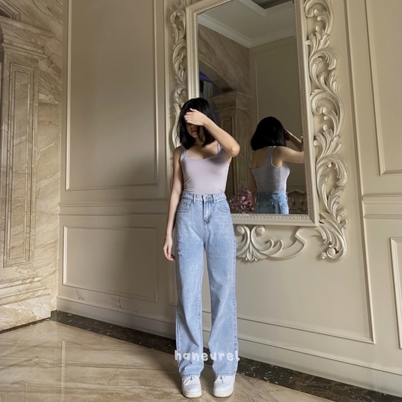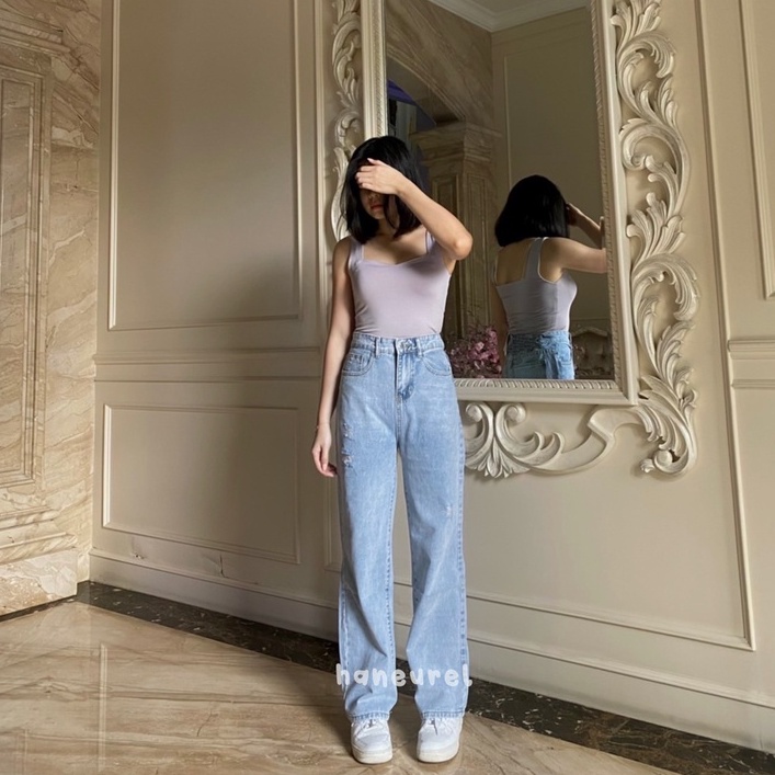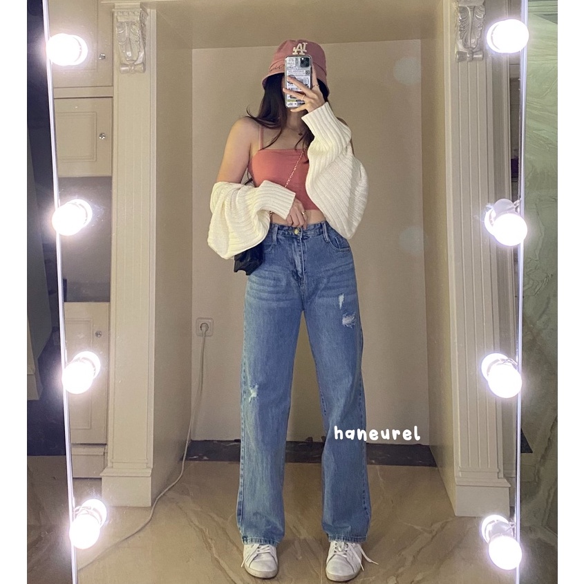 JISOO JEANS - Celana Panjang Ripped Jeans Wanita Korean Looks XS - XXL