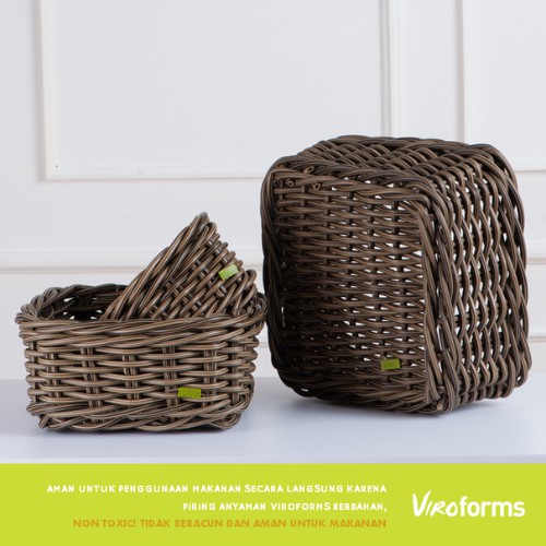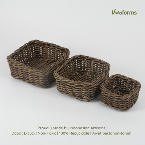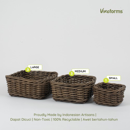 Box Keranjang Premium | Square Basket in Palm | Virofoms Keranjang Penyimpanan Anyaman Estetik Rotan Sintetis Premium, Kotak Organizer Multi Fungsi