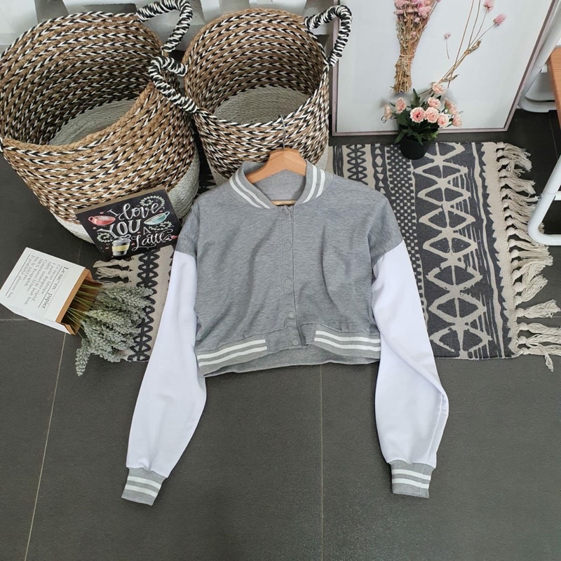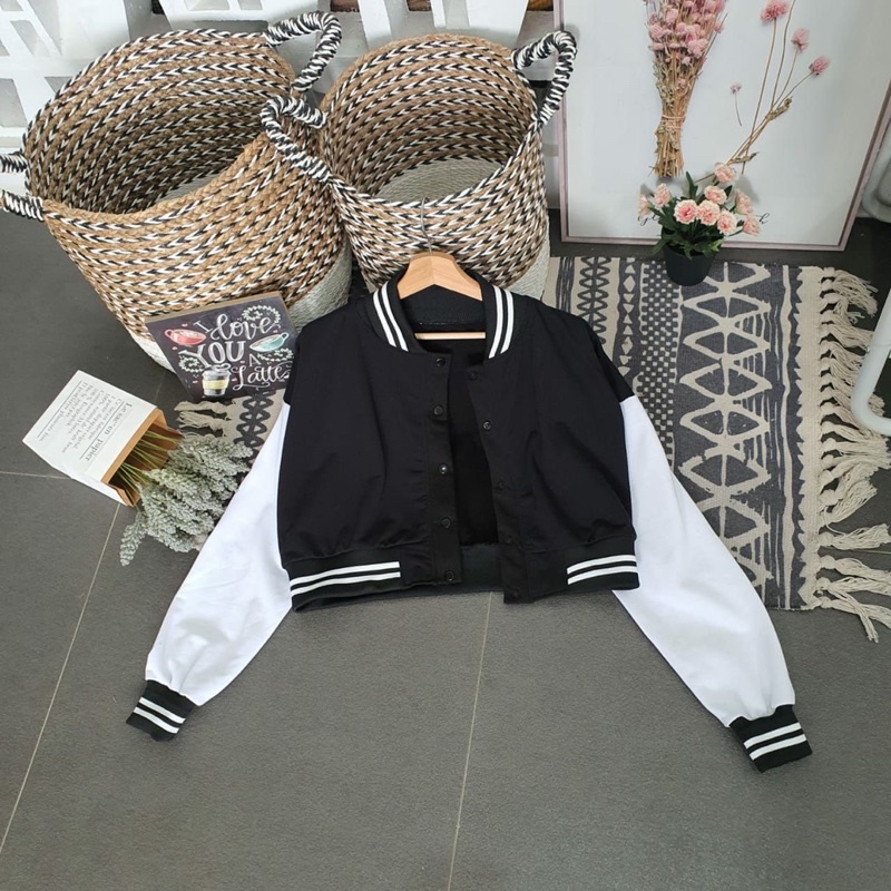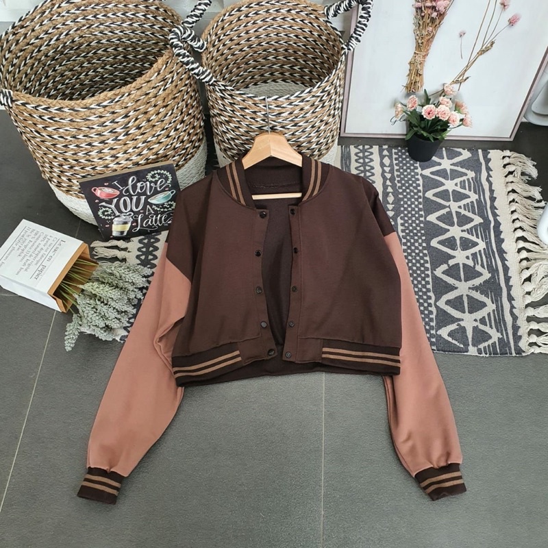 Coco Varsity Cropped Base Ball Two Tone Jacket Outerwear Jaket Baseball Wanita Crop Korean Style