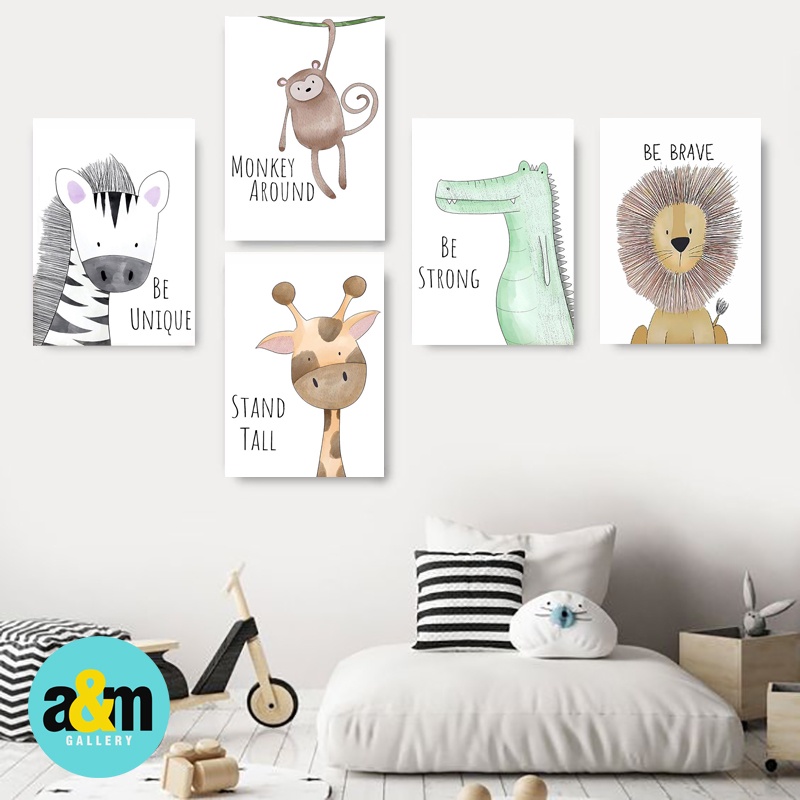 A&M Hiasan Dinding Kamar Bayi dan anak Gambar Binatang ( A4 ) Dekorasi Kamar anak