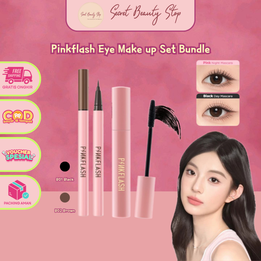 PINKFLASH Bundle Eye Make up Set | Pinkflash Oilproof Curl Long & Volume Mascara with Pinkflash Easy Eyeliner Black & Brown, Mascara, Eyeliner, Tahan Lama, Waterproof, Smudgeproof, Murah, Pinkflash Terbaru, Bundle Gen Z
