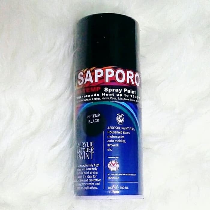 SAPPORO HI-TEMP BLACK 300ML.CAT TAHAN PANAS UNTUK LEHER KNALPOT/MESIN