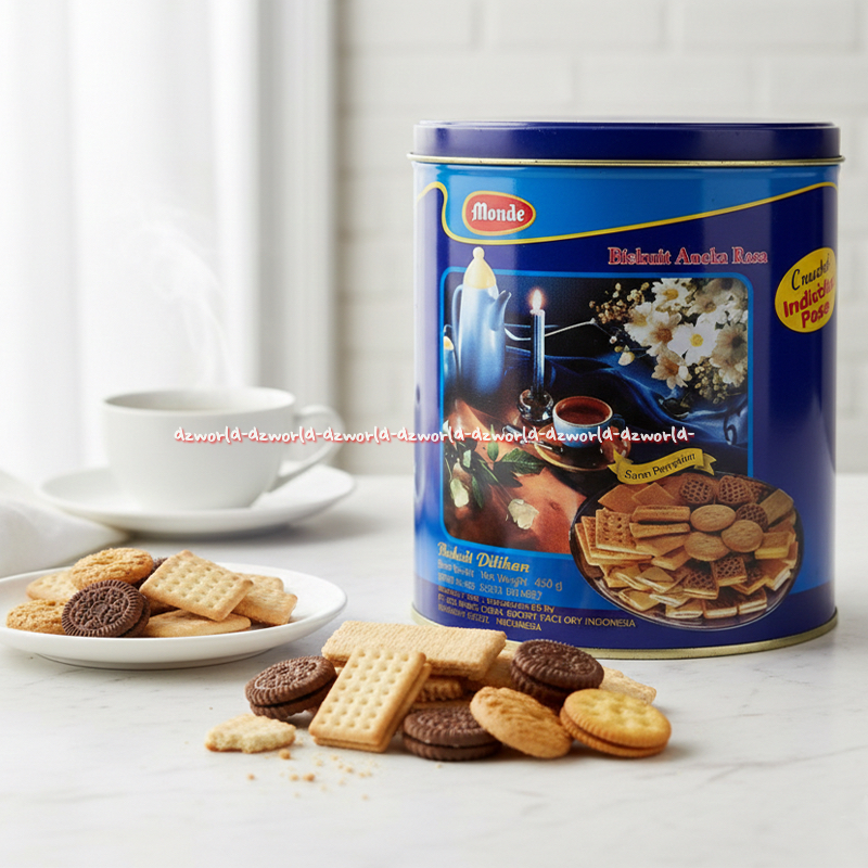 Monde Biskuit Aneka Rasa 450gr Biskuit Pilihan Kemasan Kaleng Biru Bulat Mondde Biscuit Cocok Untuk Kue Lebaran Hari Raya Mon De