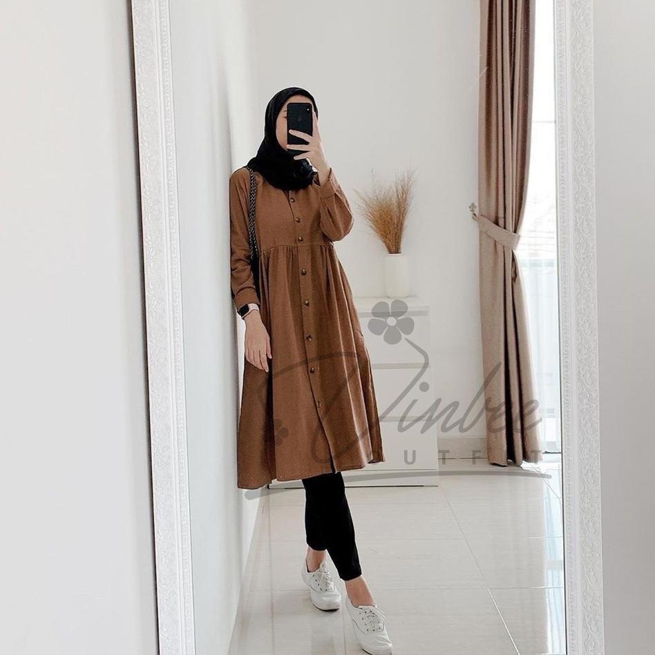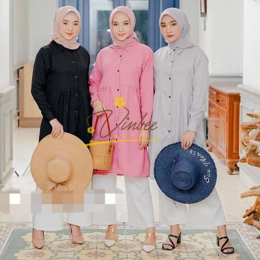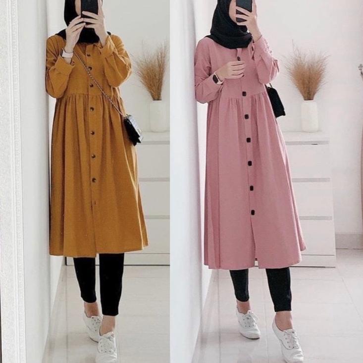 Ready Khusus NEDA TUNIK FULL KANCING HIDUP MOSCREPE // tunik dzuvia