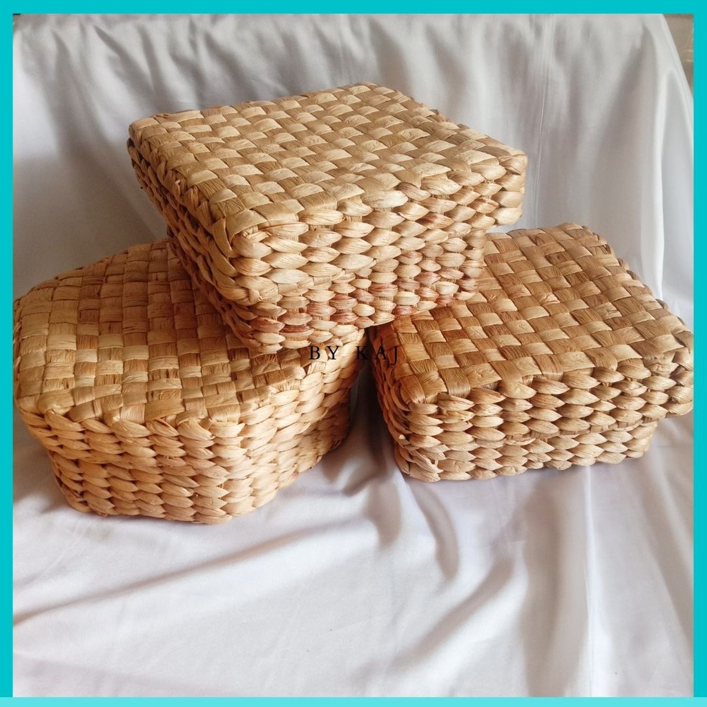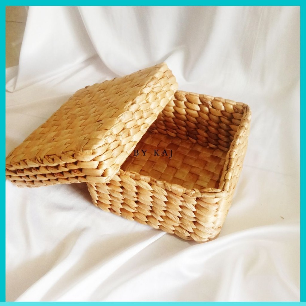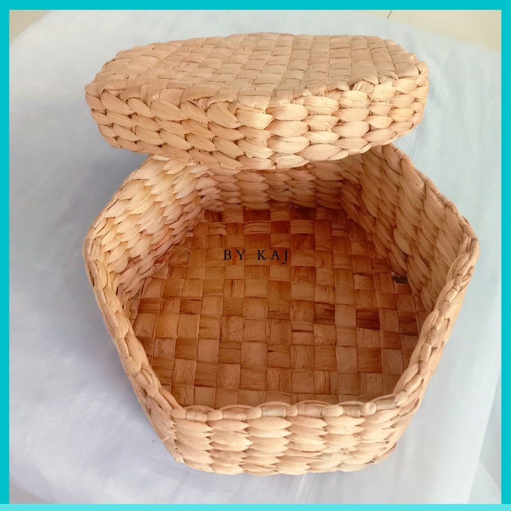Storage Box Mini Tutup Enceng Gondok with Cover / Keranjang Enceng Gondok Tutup segi enam