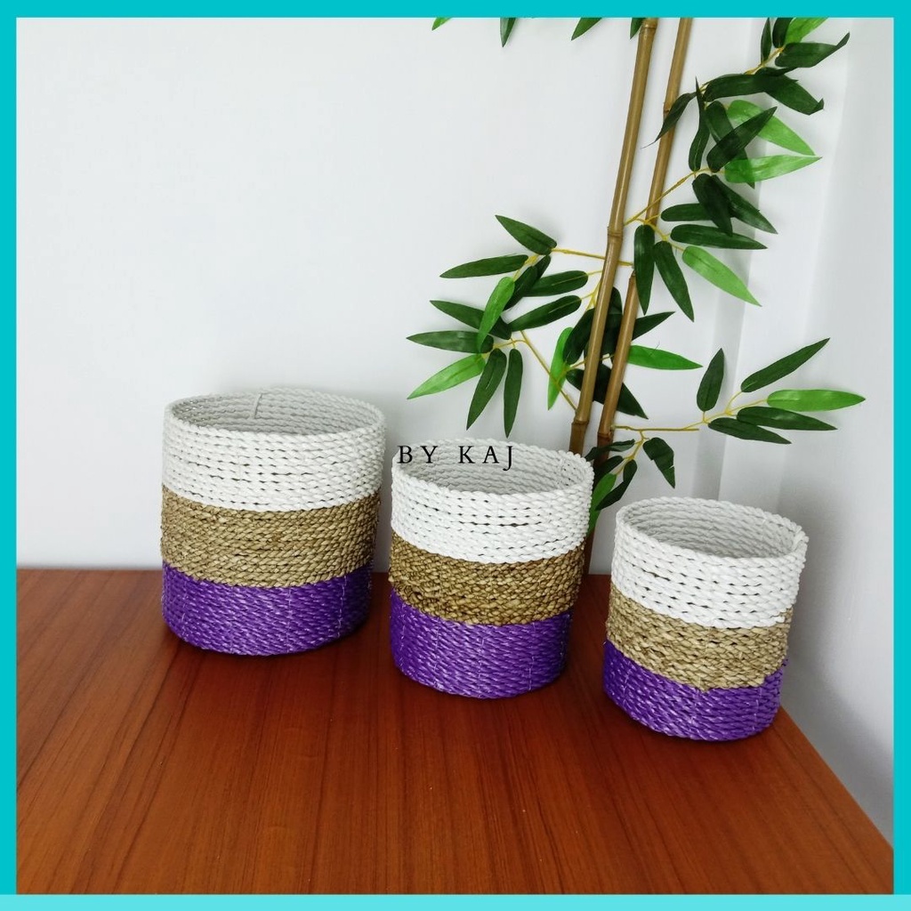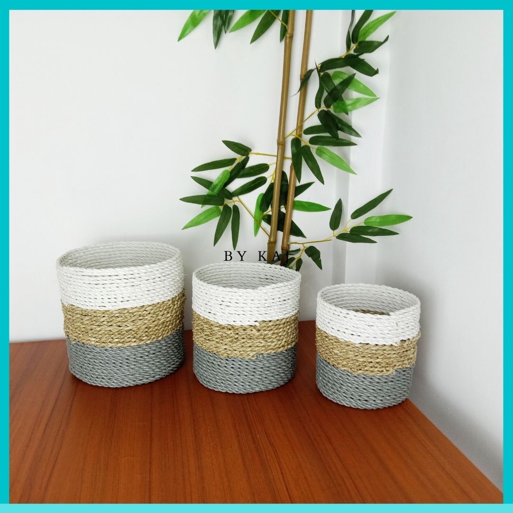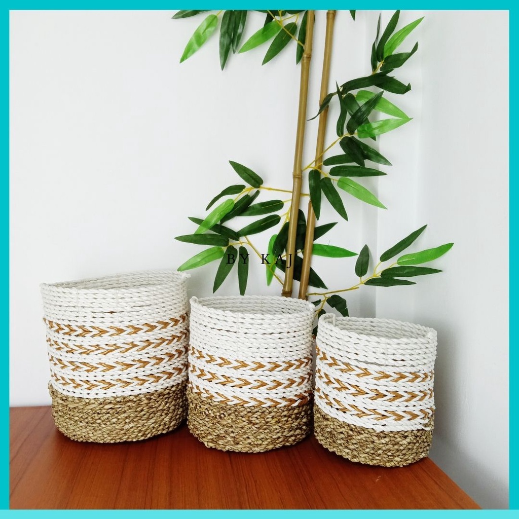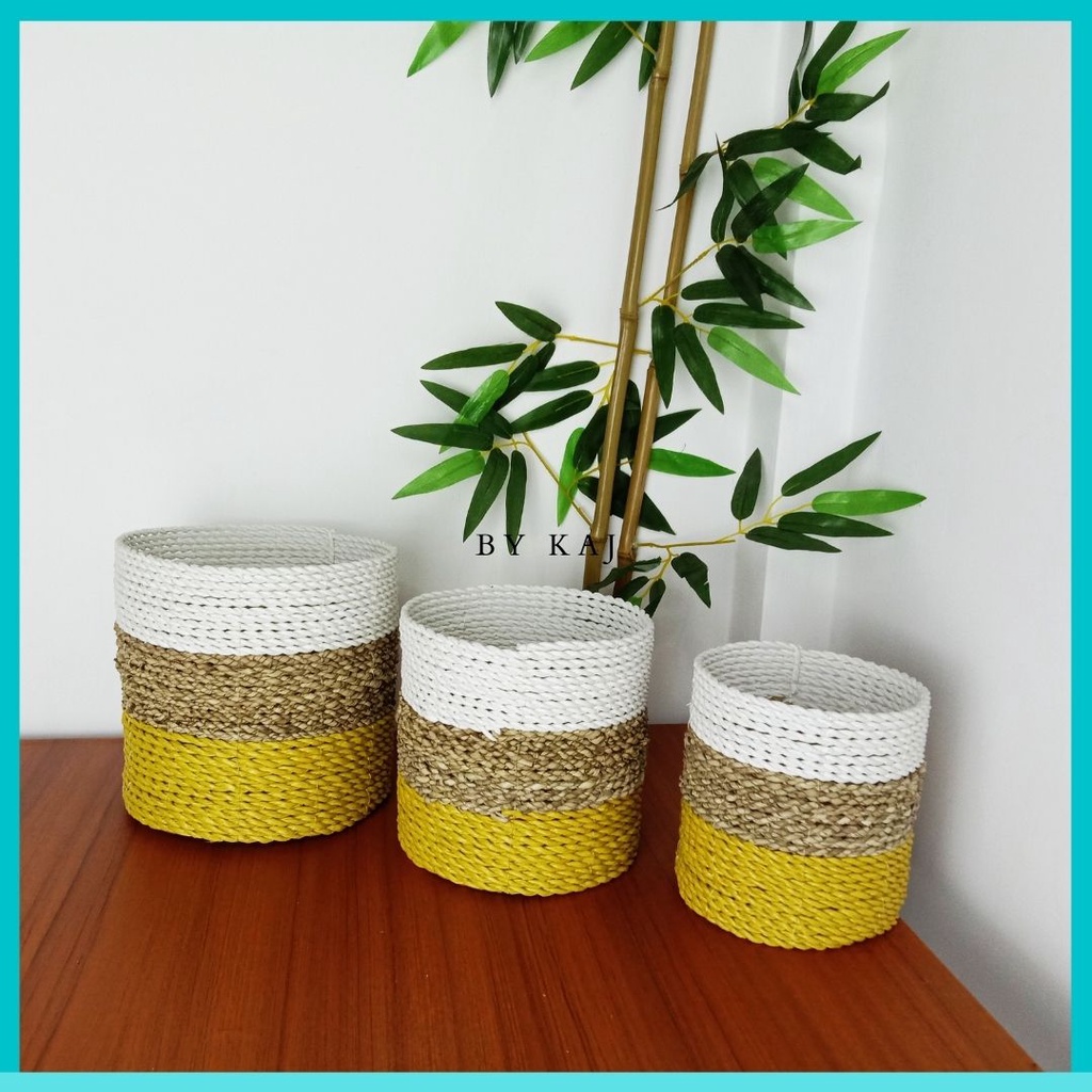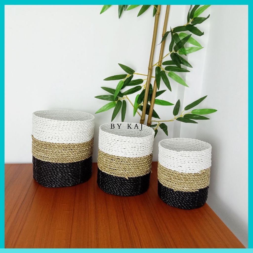 KERANJANG SEAGRASS / COVER POT SET ISI 3 ANYAMAN SEAGRASS / POT TANAMAN HIAS ISI 3