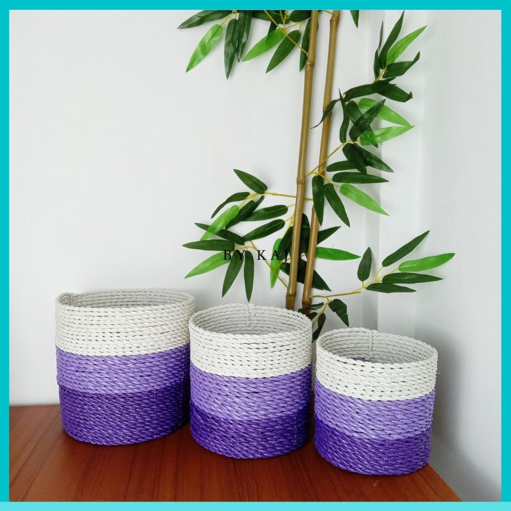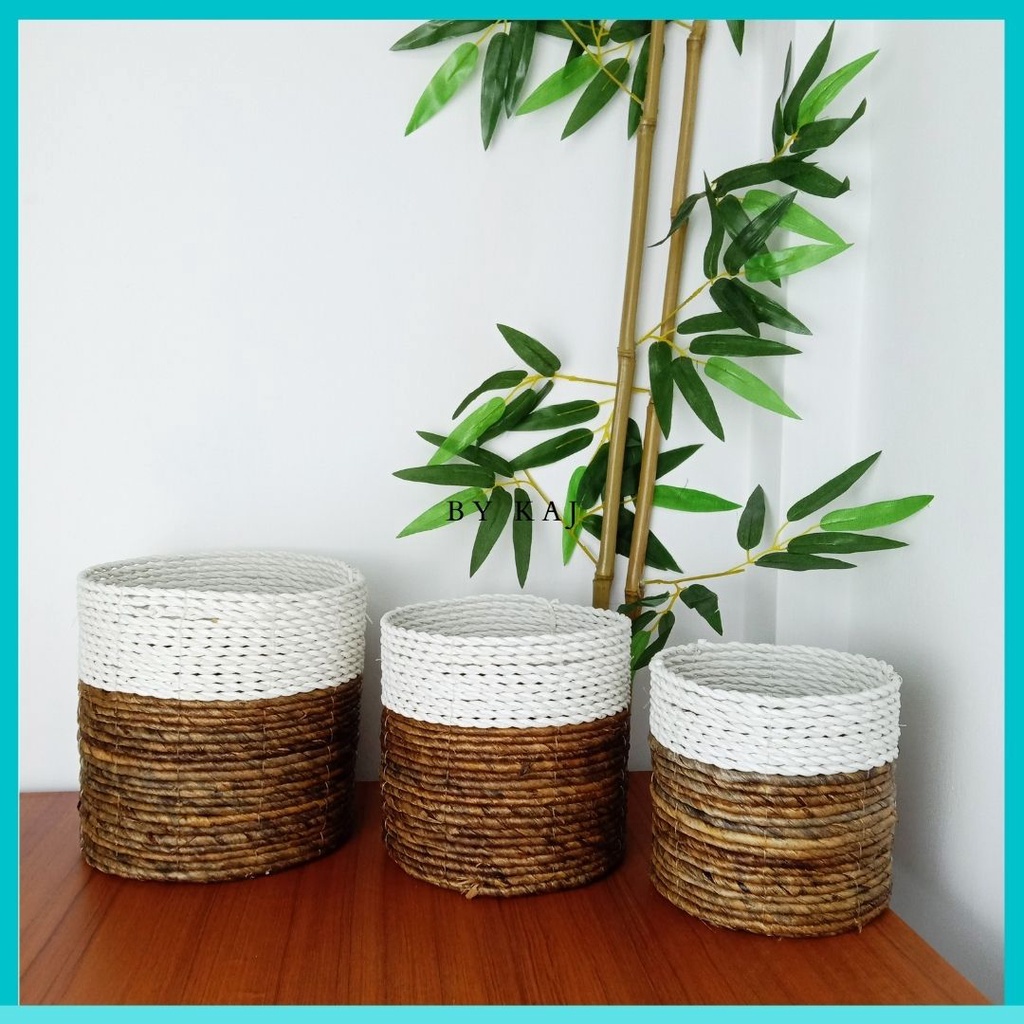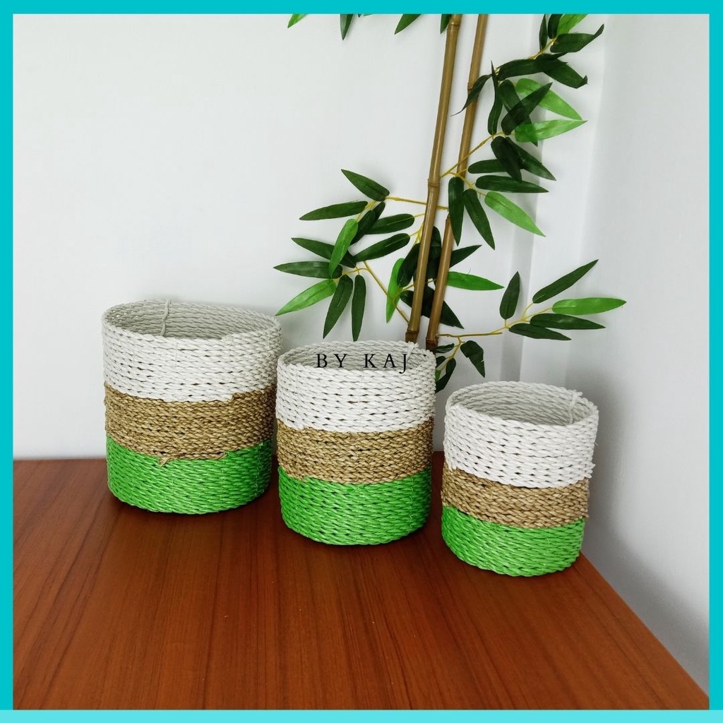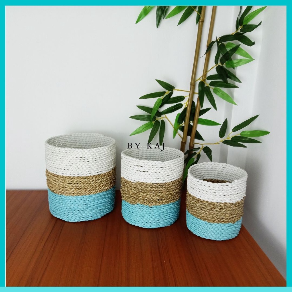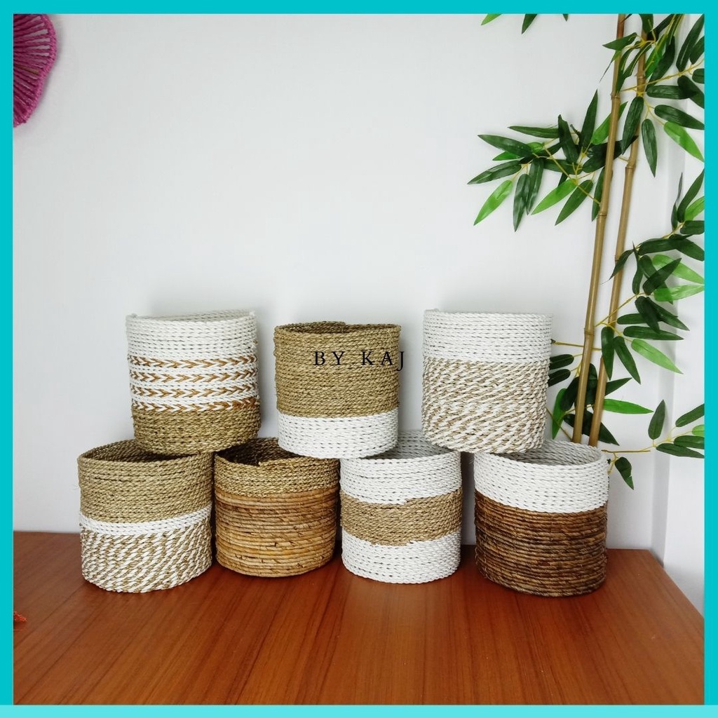 KERANJANG SEAGRASS / COVER POT SET ISI 3 ANYAMAN SEAGRASS / POT TANAMAN HIAS ISI 3