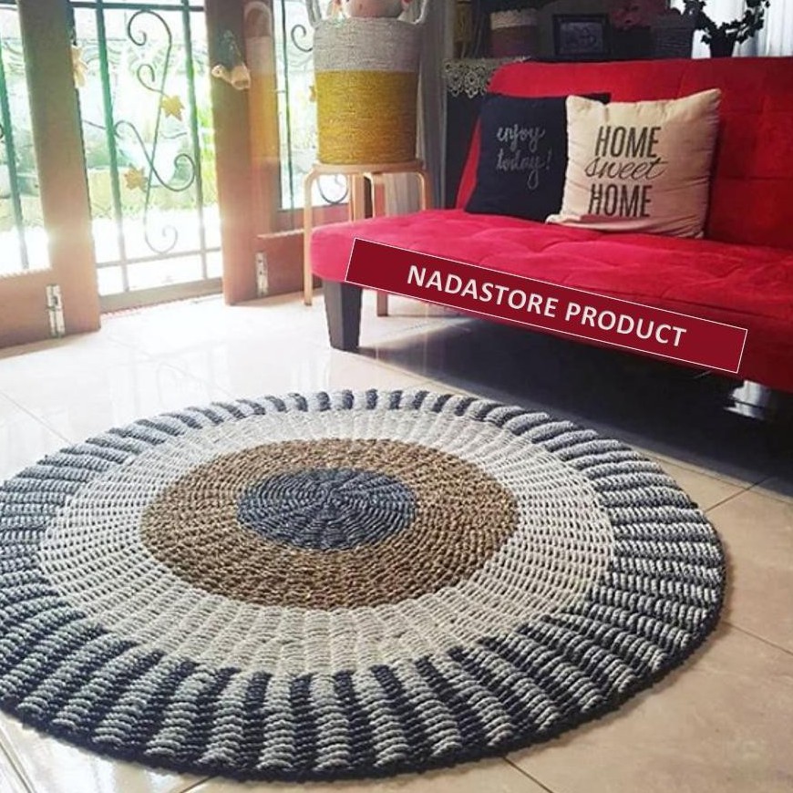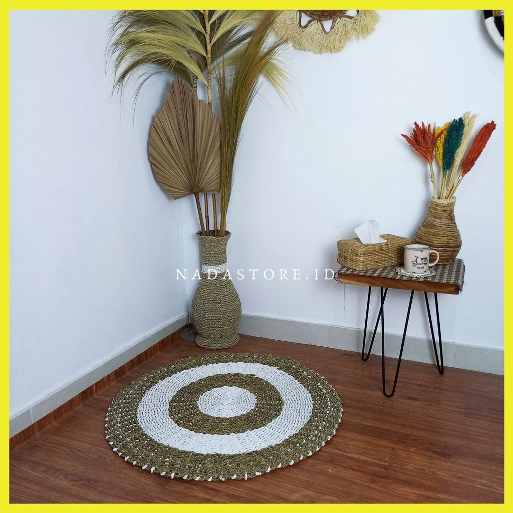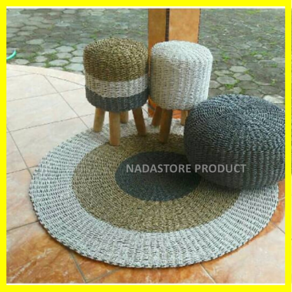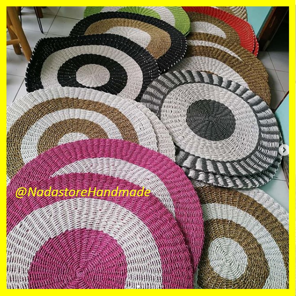 Rug anyaman seagrass / Karpet anyaman / Karpet Bulat / Floor mat / Keset anyaman seagrass bervariasi