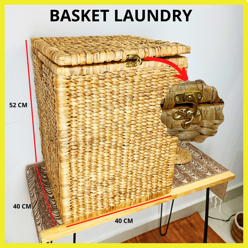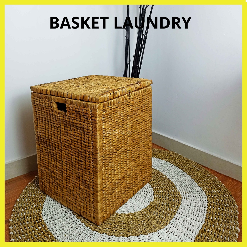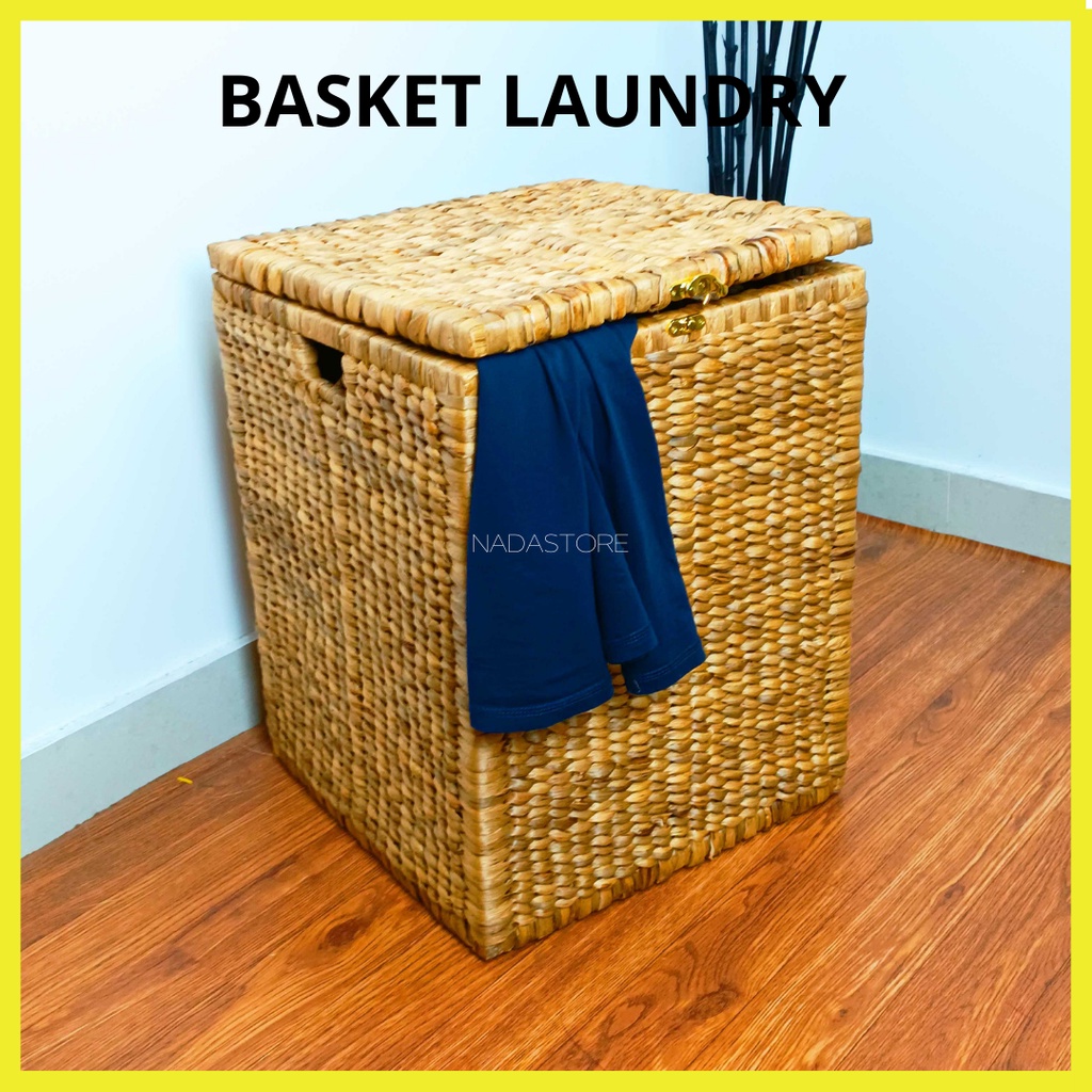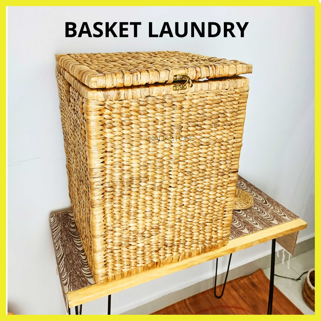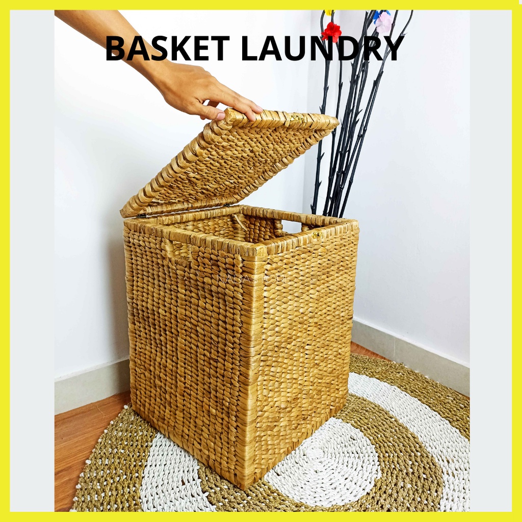 KAJ - Keranjang Laundry Anyaman / Keranjang Baju Kotor Dengan Tutup Serbaguna Anyaman Enceng Asli