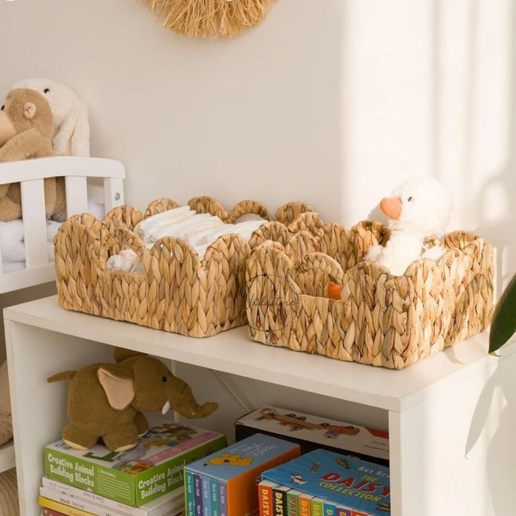 Wicker Scalloped Tray with Handle Wicker Trays for Decor, HandWoven Water Hyacinth Coffee Table Tray