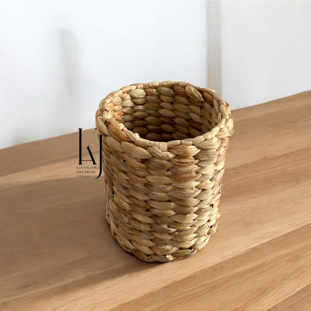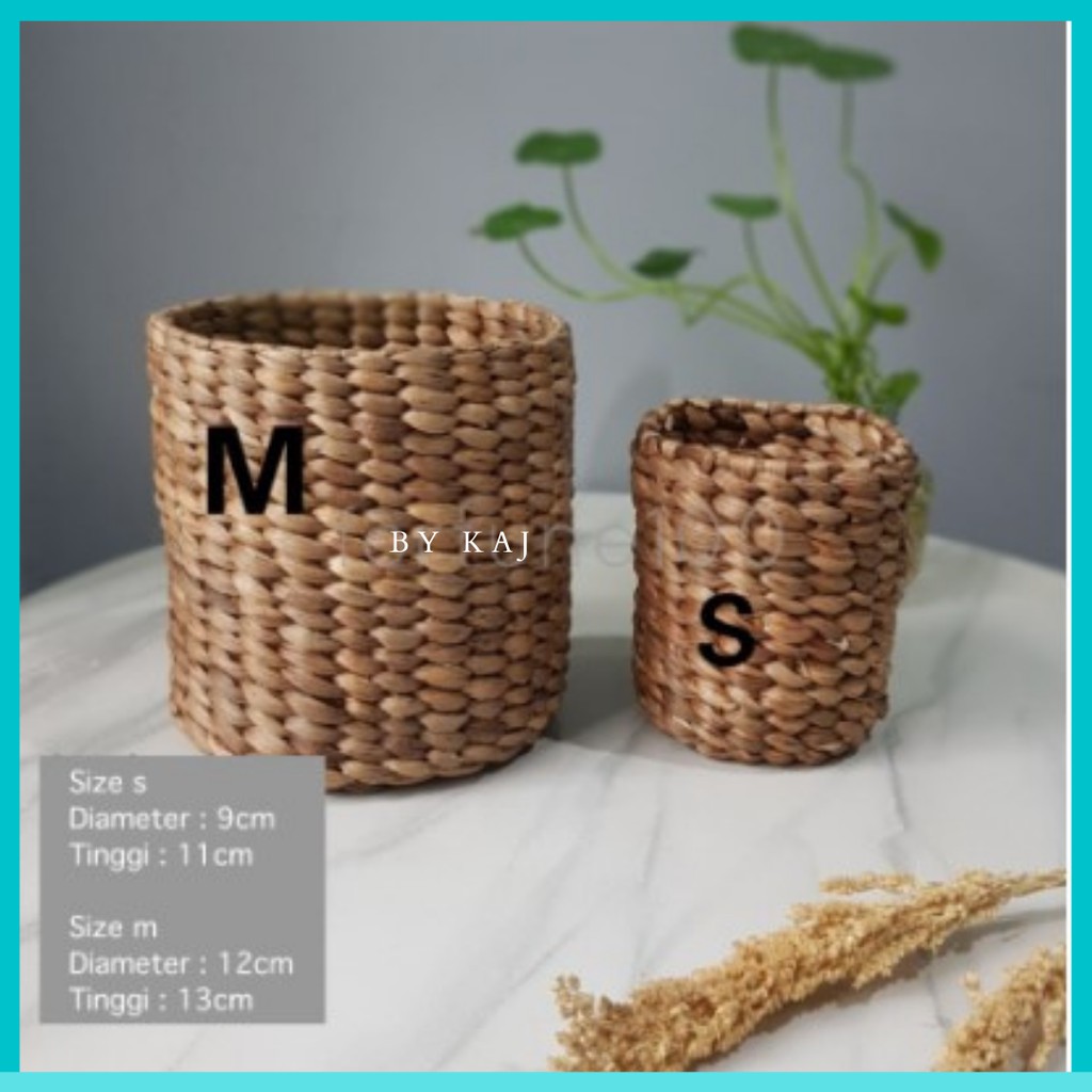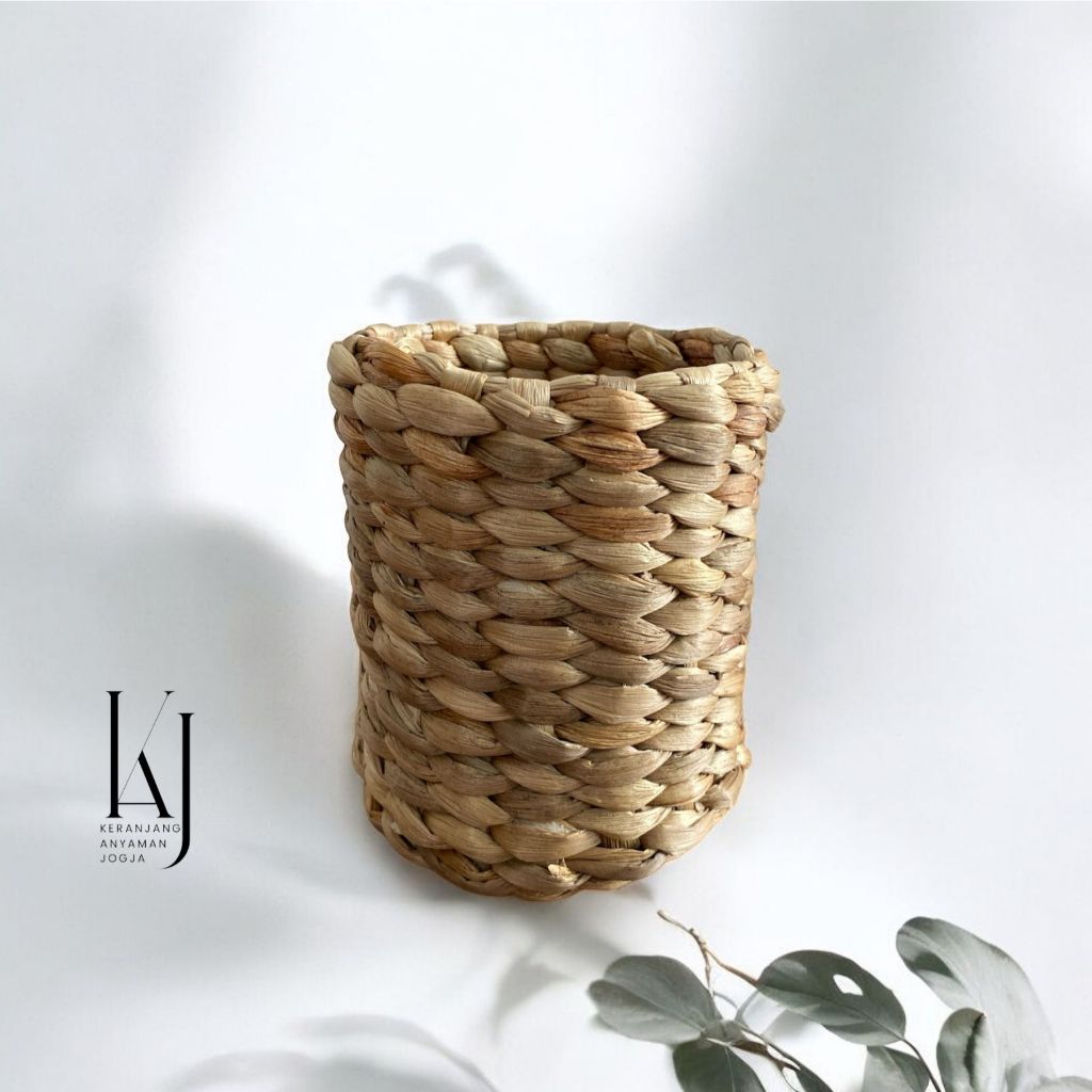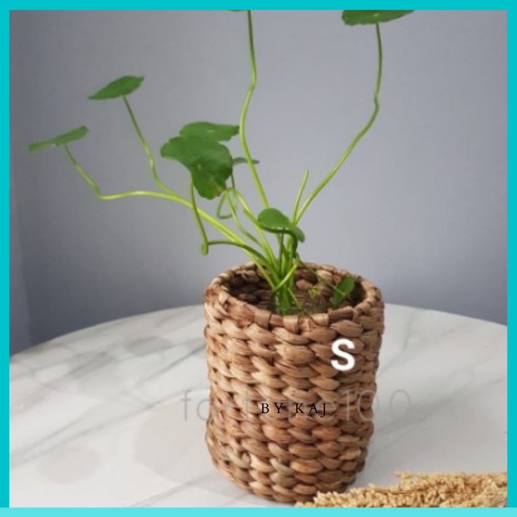 Pot Mini Anyaman Enceng Gondok / Cover Pot Tanaman Meja Purun / Vas Bunga Dekorasi ec23