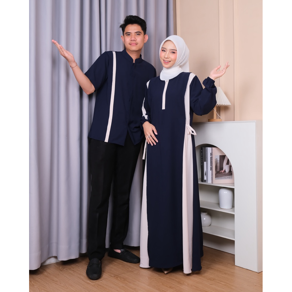 Elshanum Baju Dress Gamis Perempuan dan Kemeja Koko Pria Couple Pasangan Bahan Sabrina Anti UV