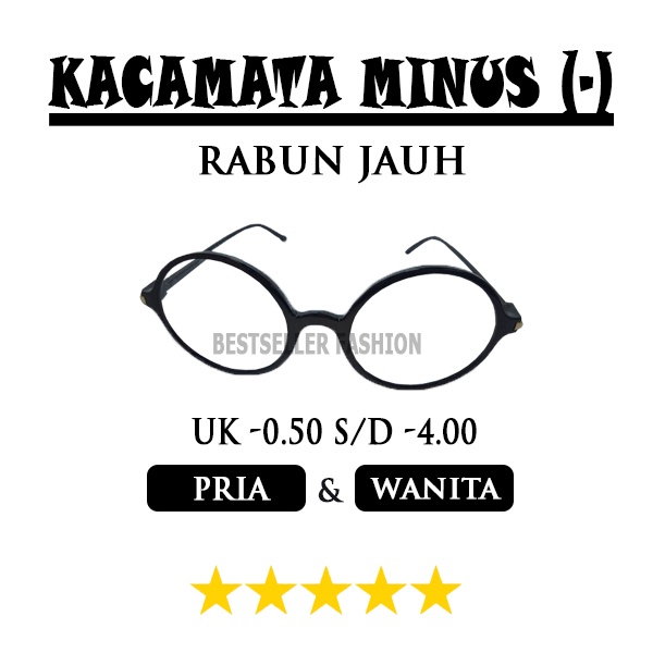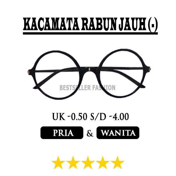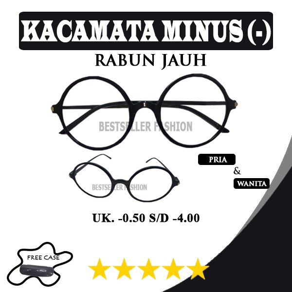 KACAMATA RABUN JAUH (-) PRIA WANITA UKURAN -0.50 S/D -4.00 LENSA MINUS BENTUK BULAT FRAME HITAM FREECASE