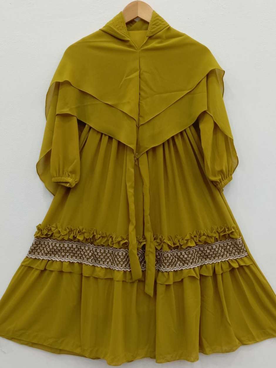 RGN Baju Gamis Dress Syar'i Cerruti Babydoll Model Renda Gold Untuk Anak 7-8 Tahun