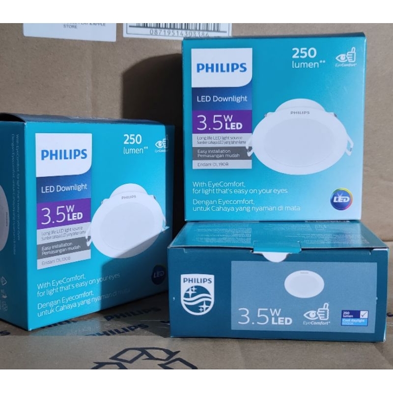 Downlight LED Philips New Eridani 3,5Watt Warna Putih 6500k/Kuning 3000k/Natural White 4000k