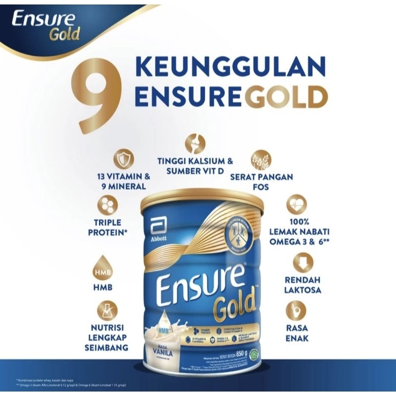 Ensure Gold HMB Vanilla 800gr Nutrisi Dewasa Rendah Laktosa