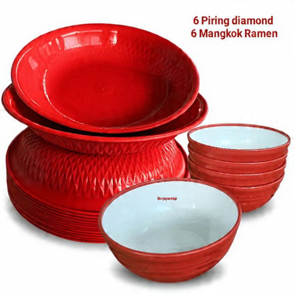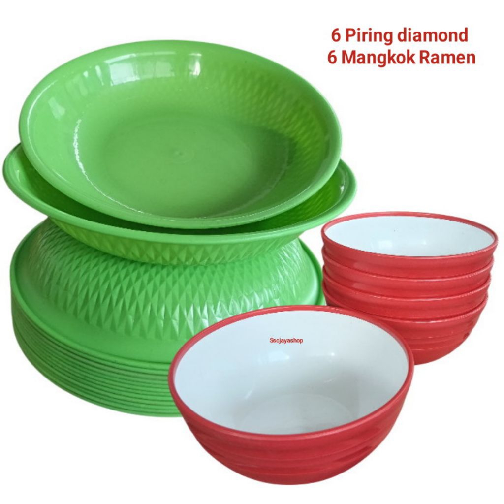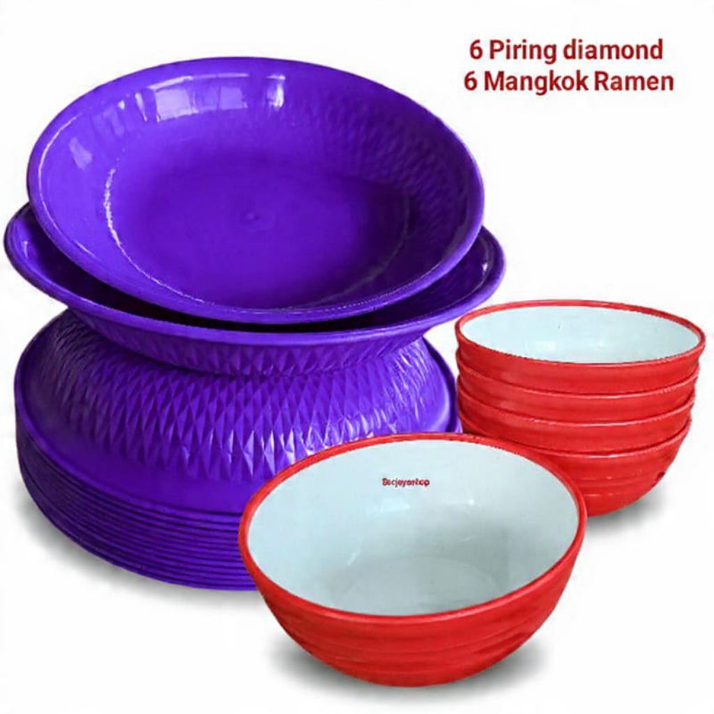 PAKET HEMAT 6 Piring Diamond & 6 Mangkok Ramen GEMOY untuk Makanan Sehari-hari
