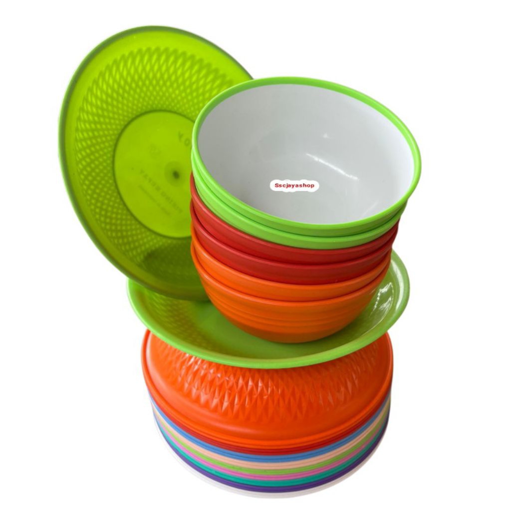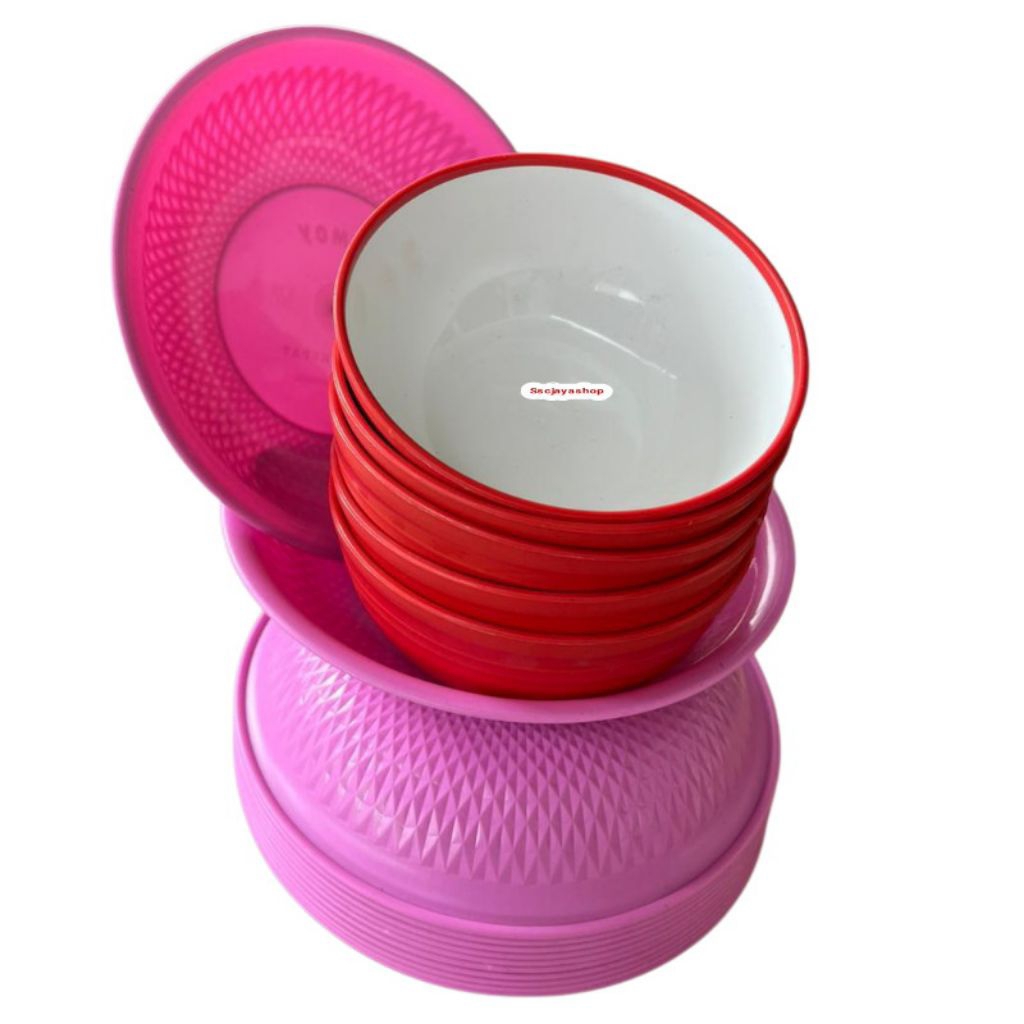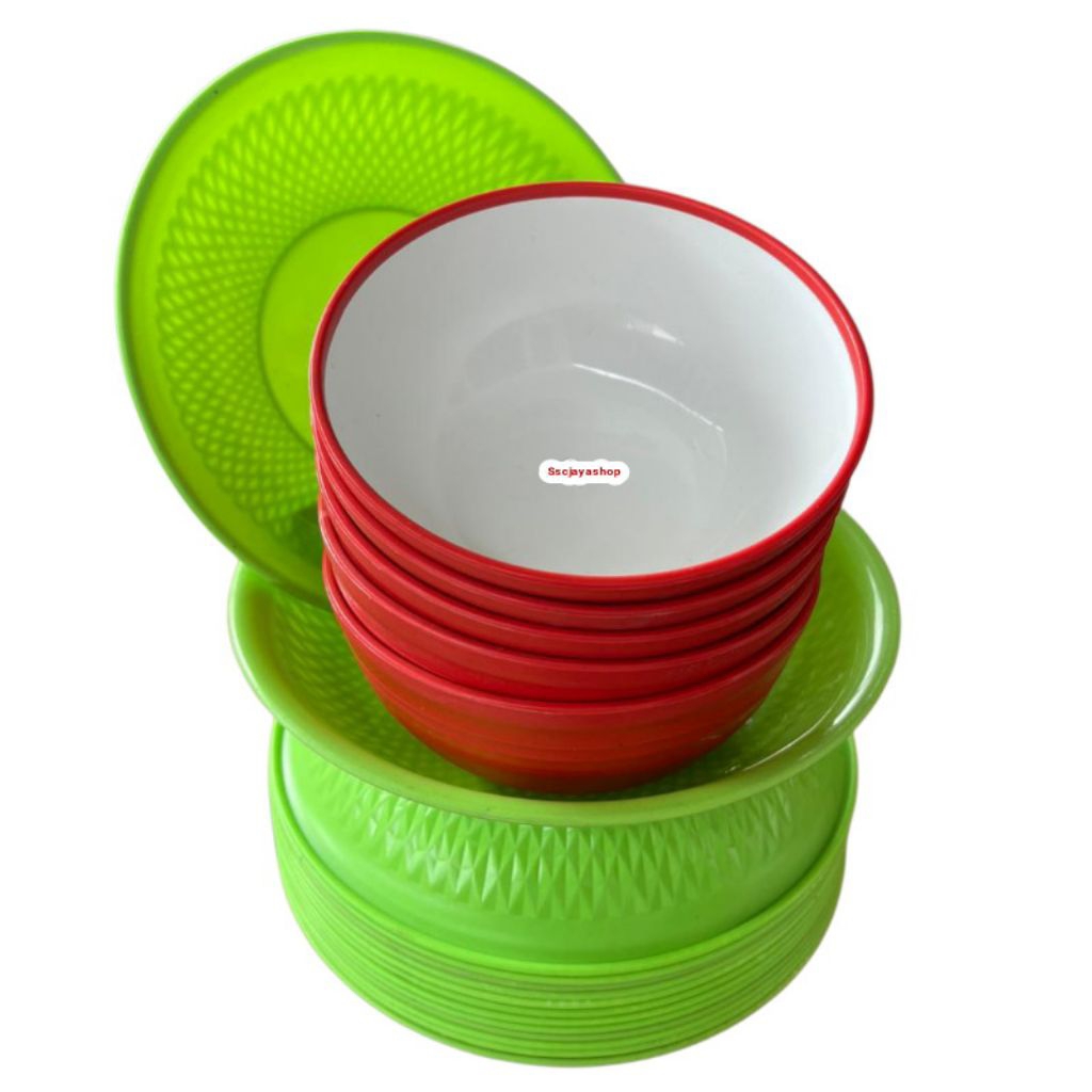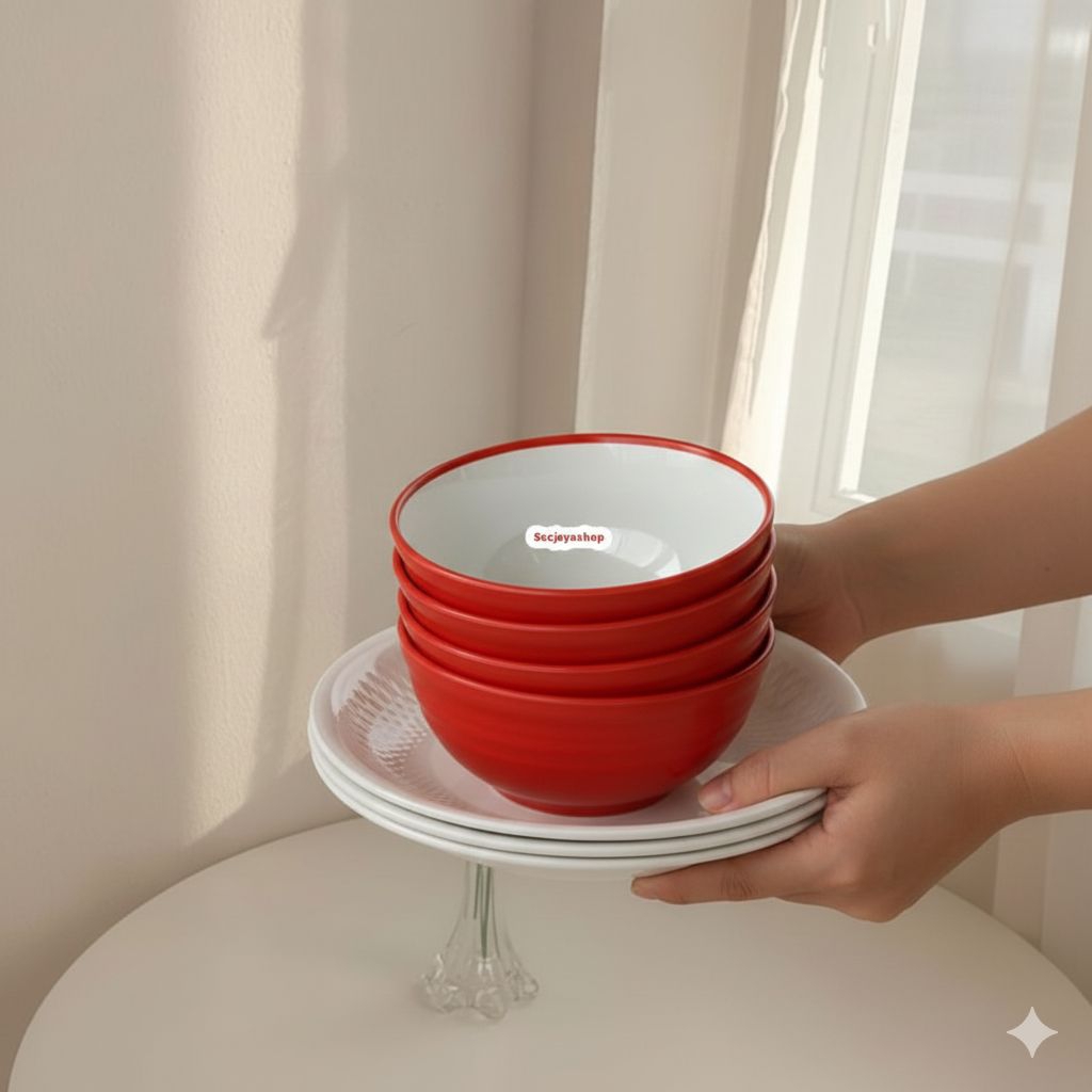 PAKET HEMAT 6 Piring Diamond & 6 Mangkok Ramen GEMOY untuk Makanan Sehari-hari