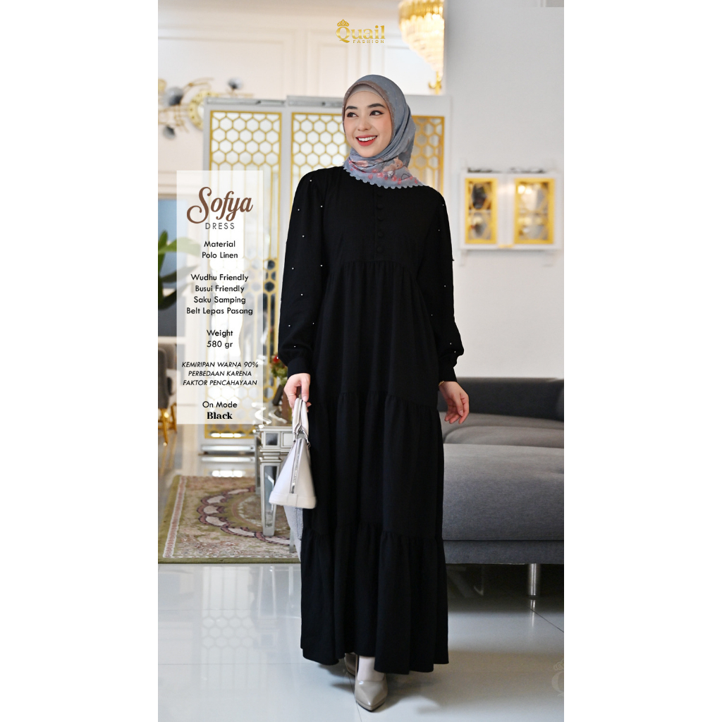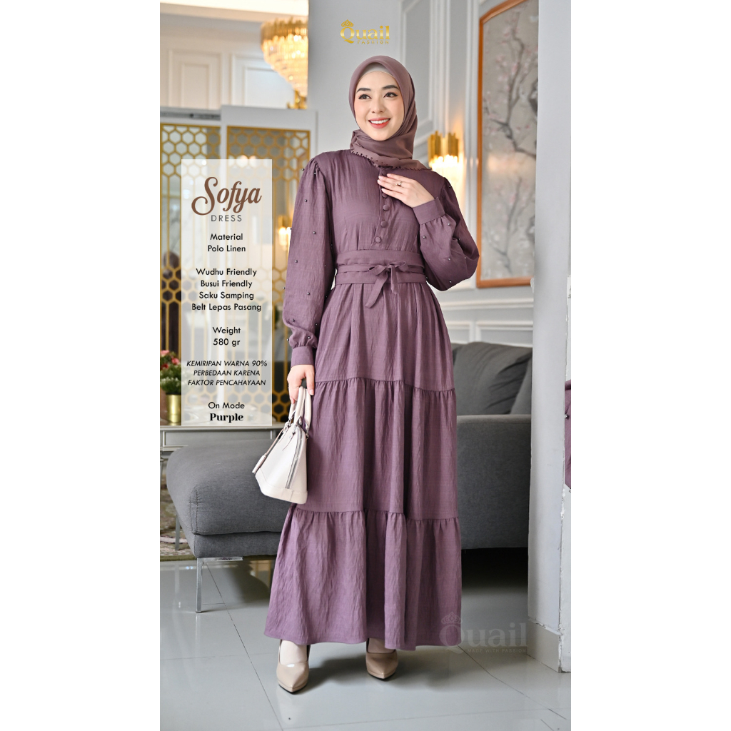 Dress Sofya Quail aksen belt / obi buka pasang, tebaran mutiara