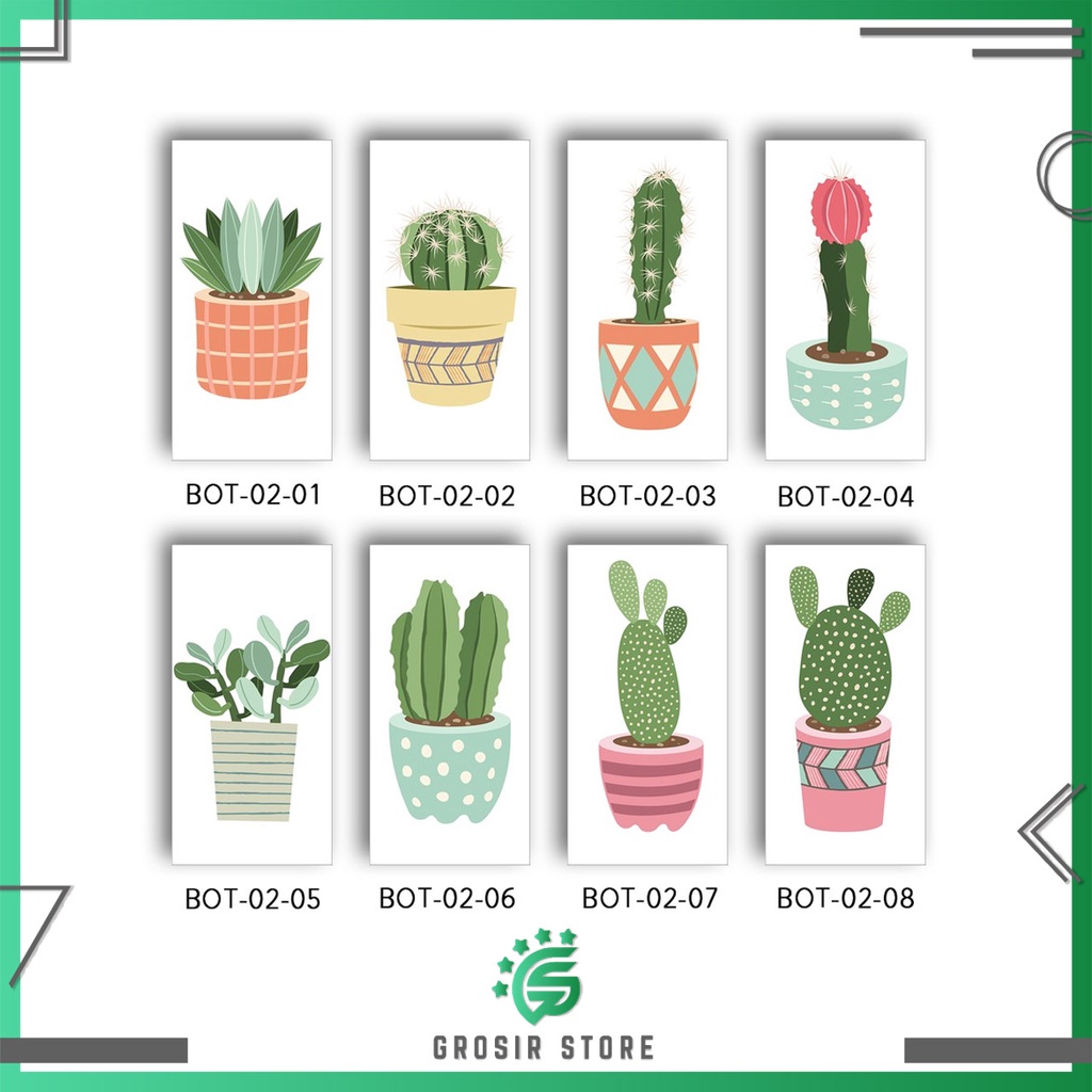 Grosir Store - DEKORASI HIASAN DINDING POSTER KAYU BOTANICAL KAKTUS TANAMAN POT 10X20 BOT02