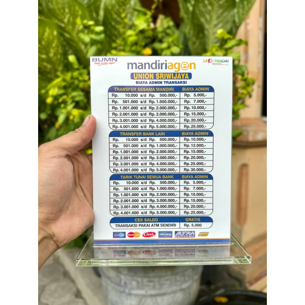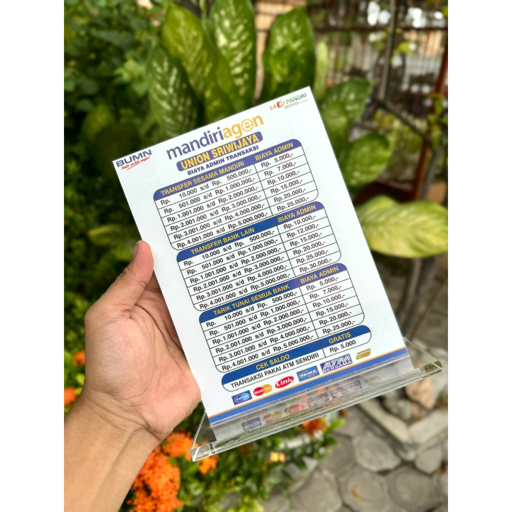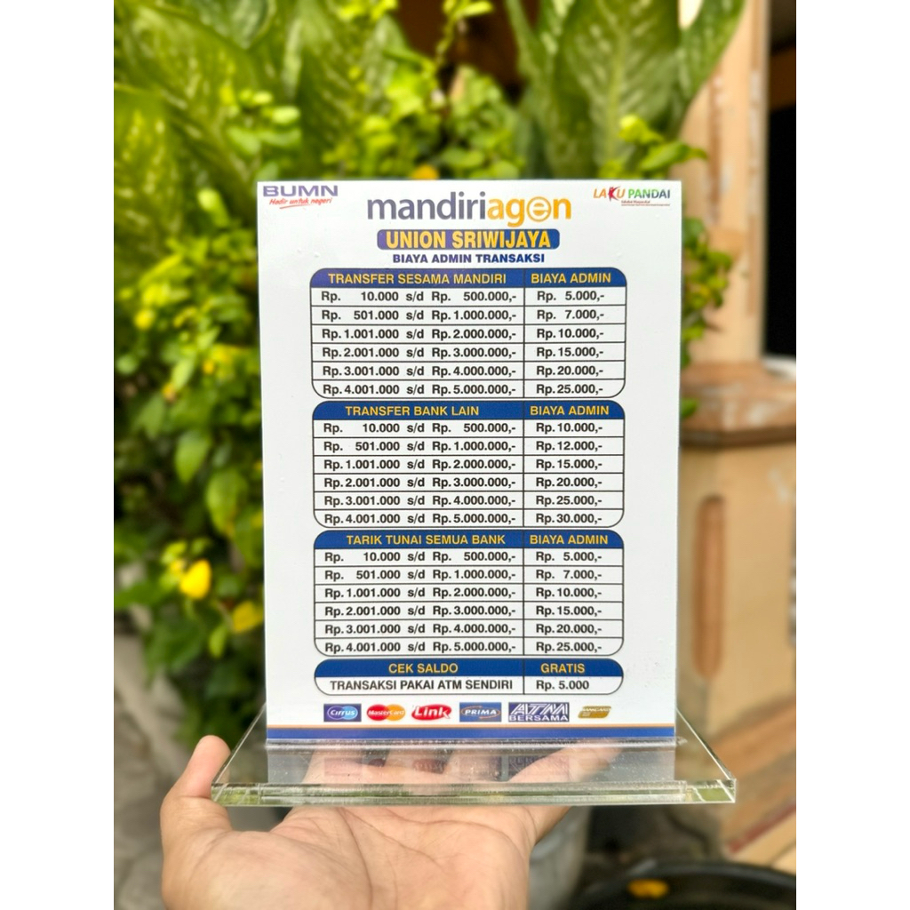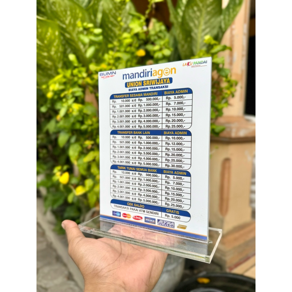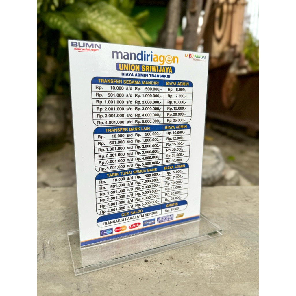 BISA CUSTOM AKRILIK MEJA AGEN BANK MANDIRI UKURAN 15x20cm BAHAN KUAT TEBAL BERKUALITAS