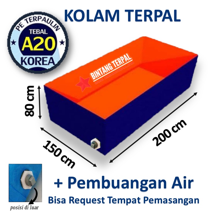 Kolam Terpal Ikan Kotak 200x150x80 - 1.5x2x08 - 200x150x80 - 2x1.5x08 Terpal Kolam Ikan Korea