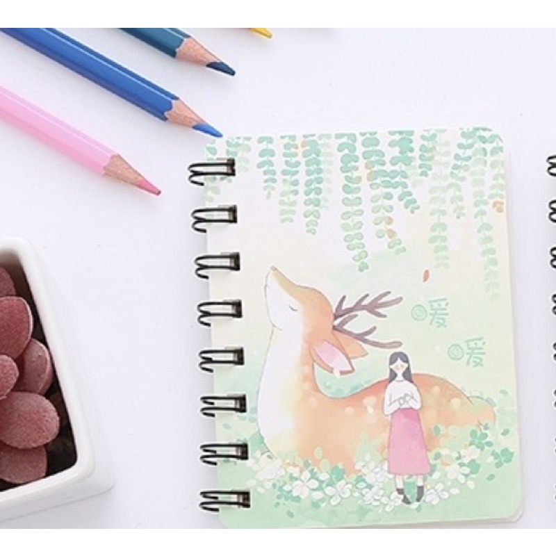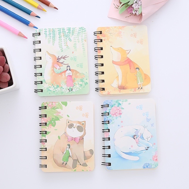 notebook A7 ring notes notepad gaya korea motif pastel watercolor series estetik aesthetic note book kucing cat deer rusa dongeng fairytale fox rubah
