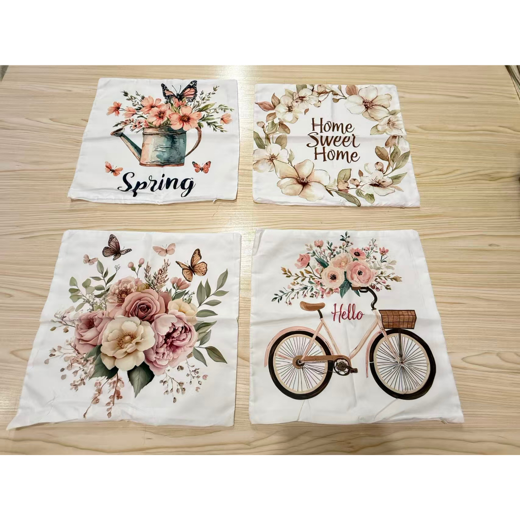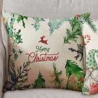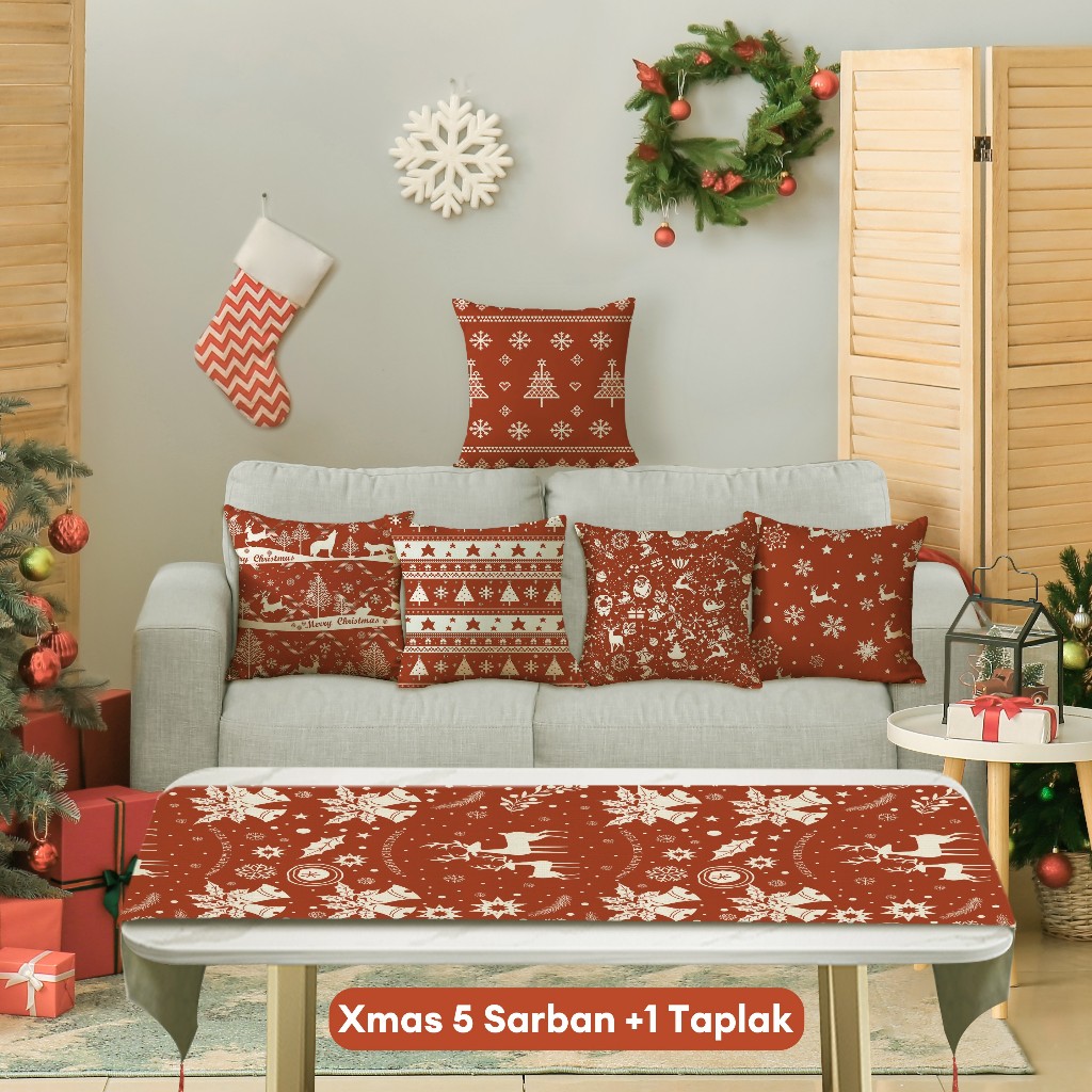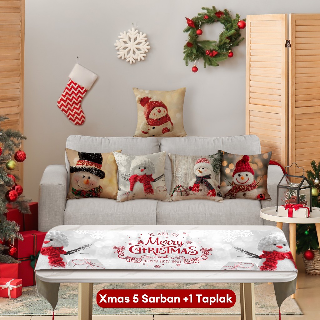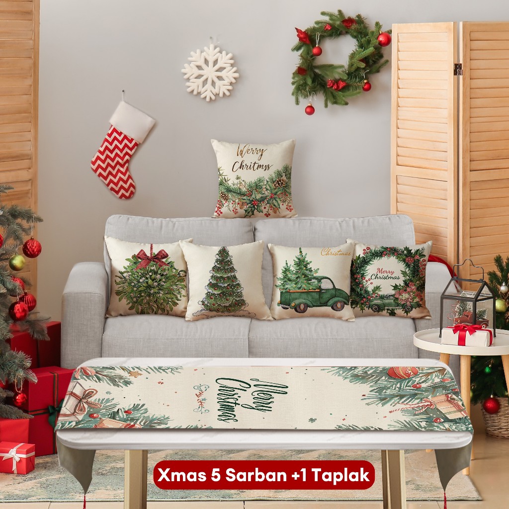 Natal Cetak Linen 40*40cm Sarung Bantal+ Taplak Meja Setelan Dekorasi Xmas Rumah 6 Buah Set Alas Meja Hadiah Natal
