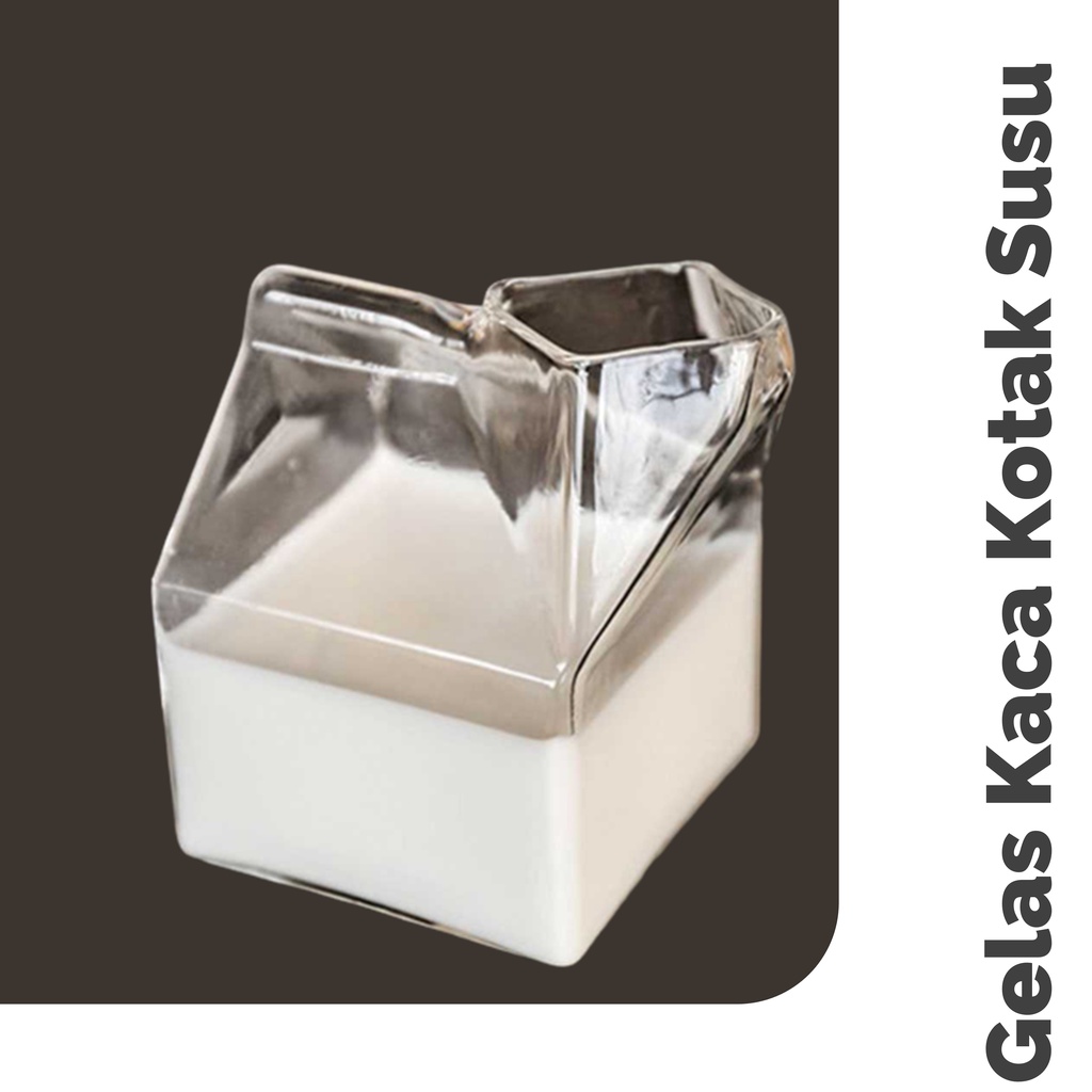 Gelas Kaca Unik Lucu Model Kotak Susu Design Milk Box 300ml Gelas Aesthetic Korea Estetik