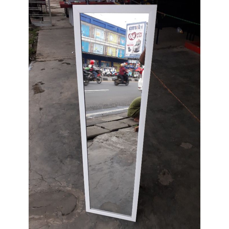 Standing Mirror / Cermin Berdiri Full body / Bisa Gantung Ukuran 35 x 127 Cm Full Bingkai - Putih