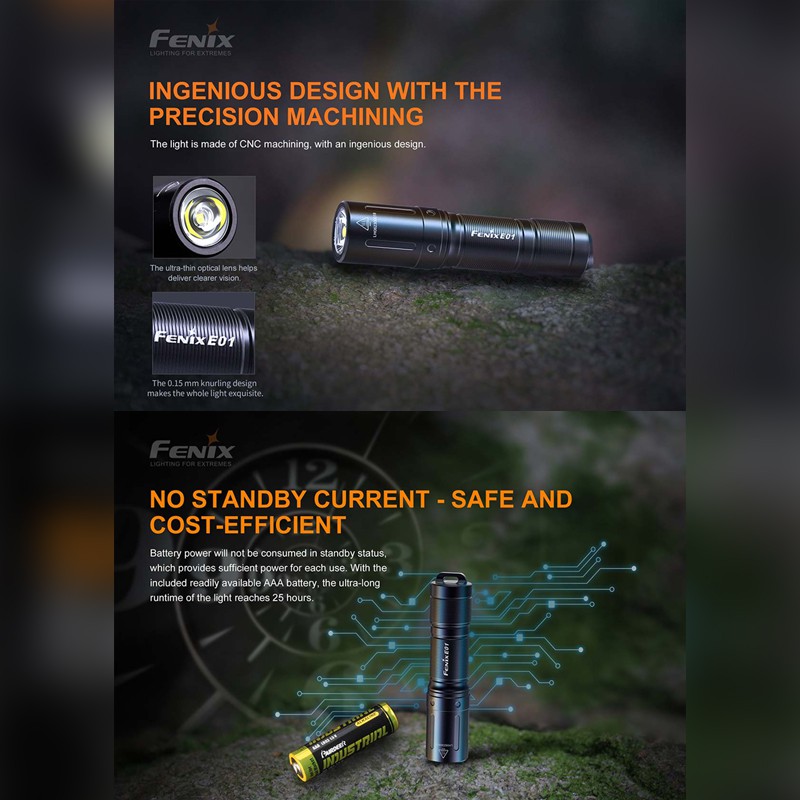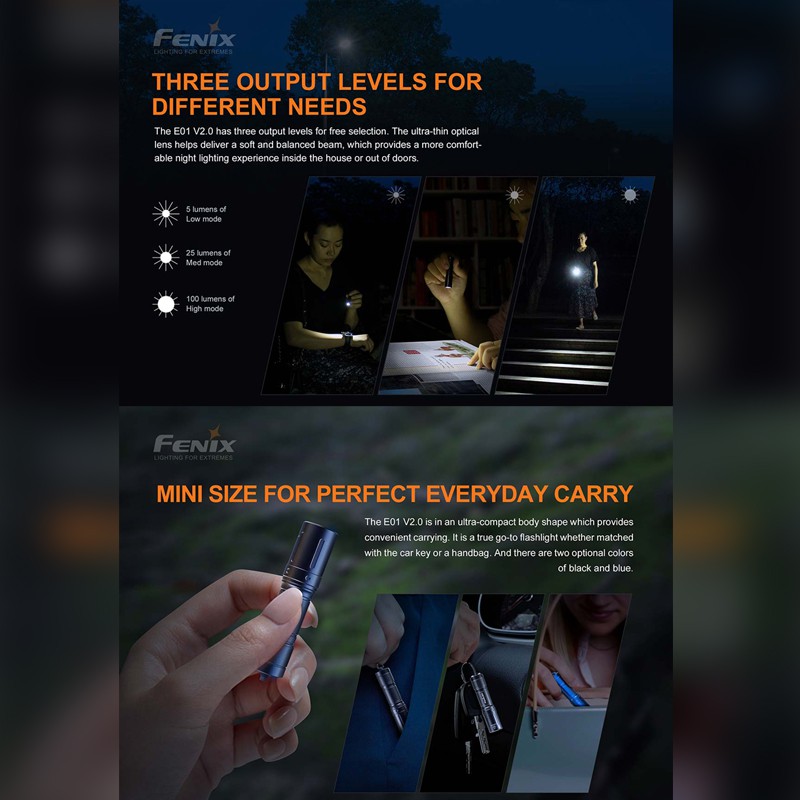Fenix Flashlight E01 V2.0 AAA Mini Flashlight 100 Lumens Garansi Resmi