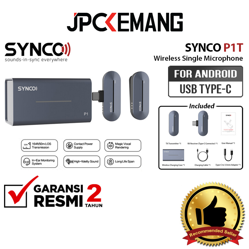 Synco P1T Type-C Wireless Microphone TX+RX Synco P1 T Wireless Mic Garansi Resmi
