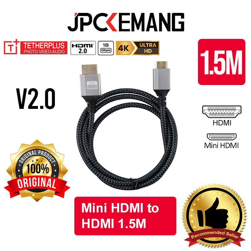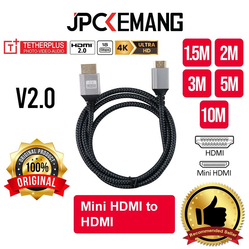 TETHERPLUS MINI HDMI TO HDMI A V2.0 4K Nylon Braided / PVC Cable Tether Plus Kabel TP-NUHDAMNM Original