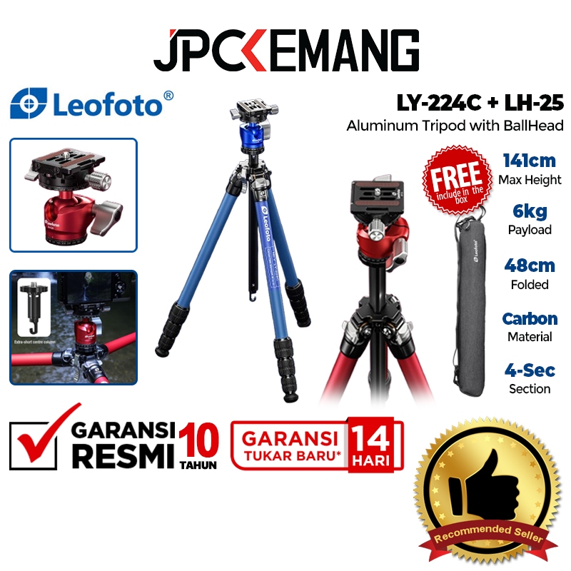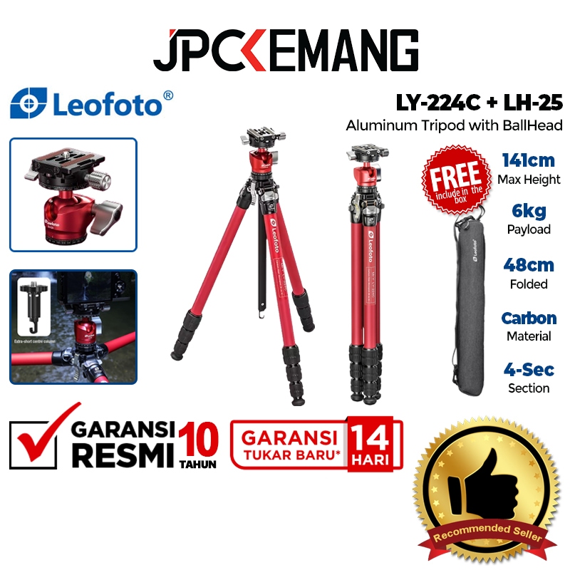 LEOFOTO LY-224C + LH-25 Carbon Fiber Tripod Camera with Ball Head Leofoto LY224C + LH25 Carbon Fibre Tripod Kamera & Ballhead Garansi Resmi