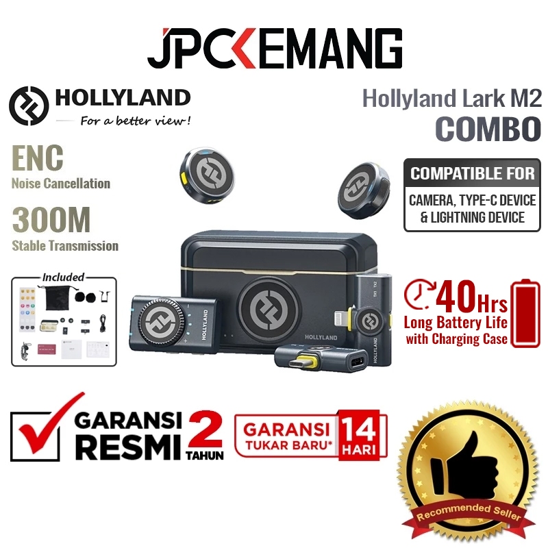 Hollyland Lark M2 Combo Type C Lightning Duo Wireless Microphone Dual Mic Camera HP Garansi Resmi