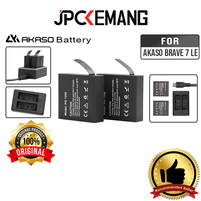 Akaso Battery kit V50X / Brave 7 / Brave 7 LE (2 Battery + 1 Docking Charger) Original