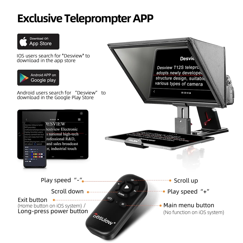 Desview T12S Portable Teleprompter Camera Camcorder DSLR Desview T12 S Garansi Resmi